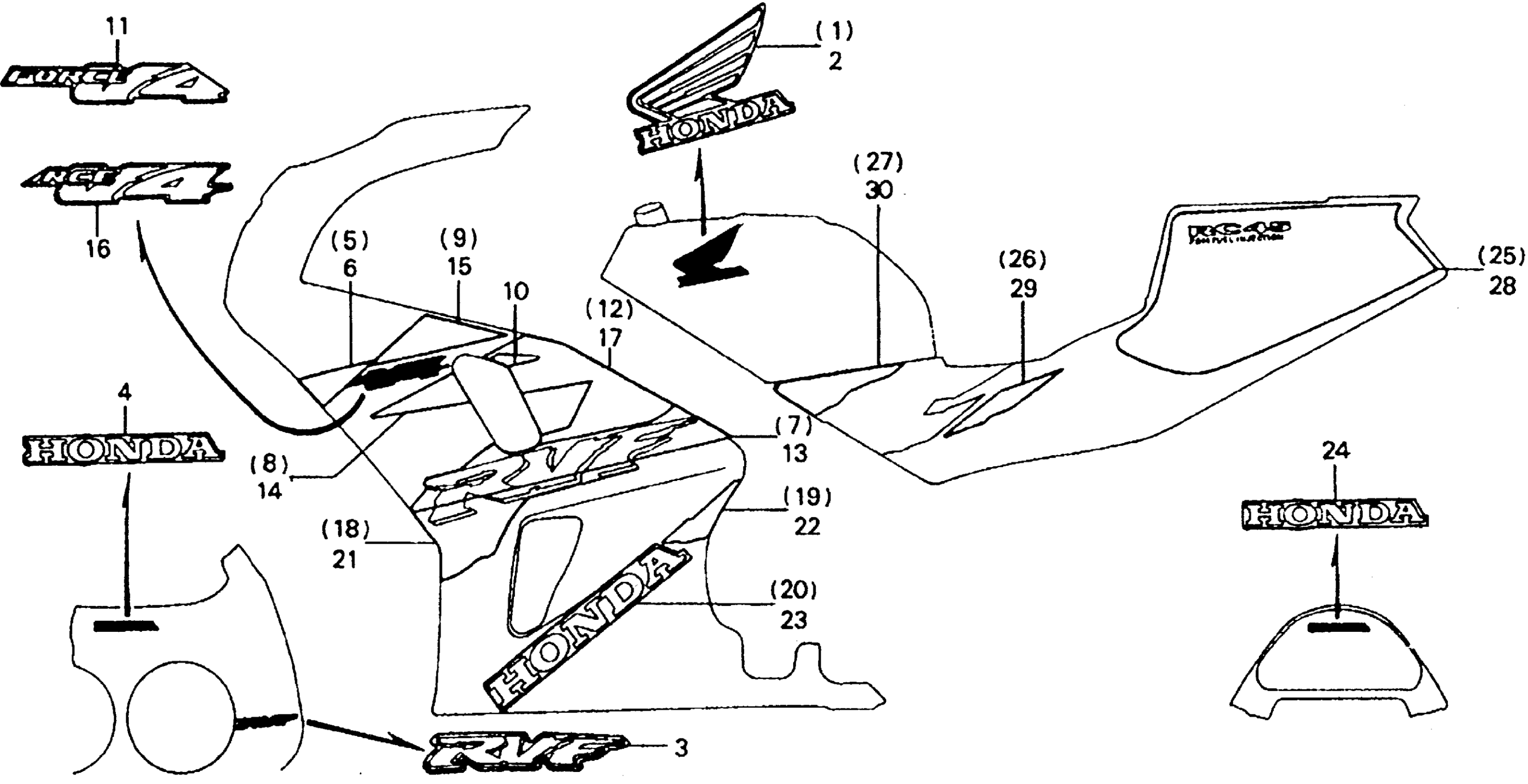 Honda RVF750RA (94) RC45, JPN, VIN# JH2RC450-RM000006 STRIPE Diagram