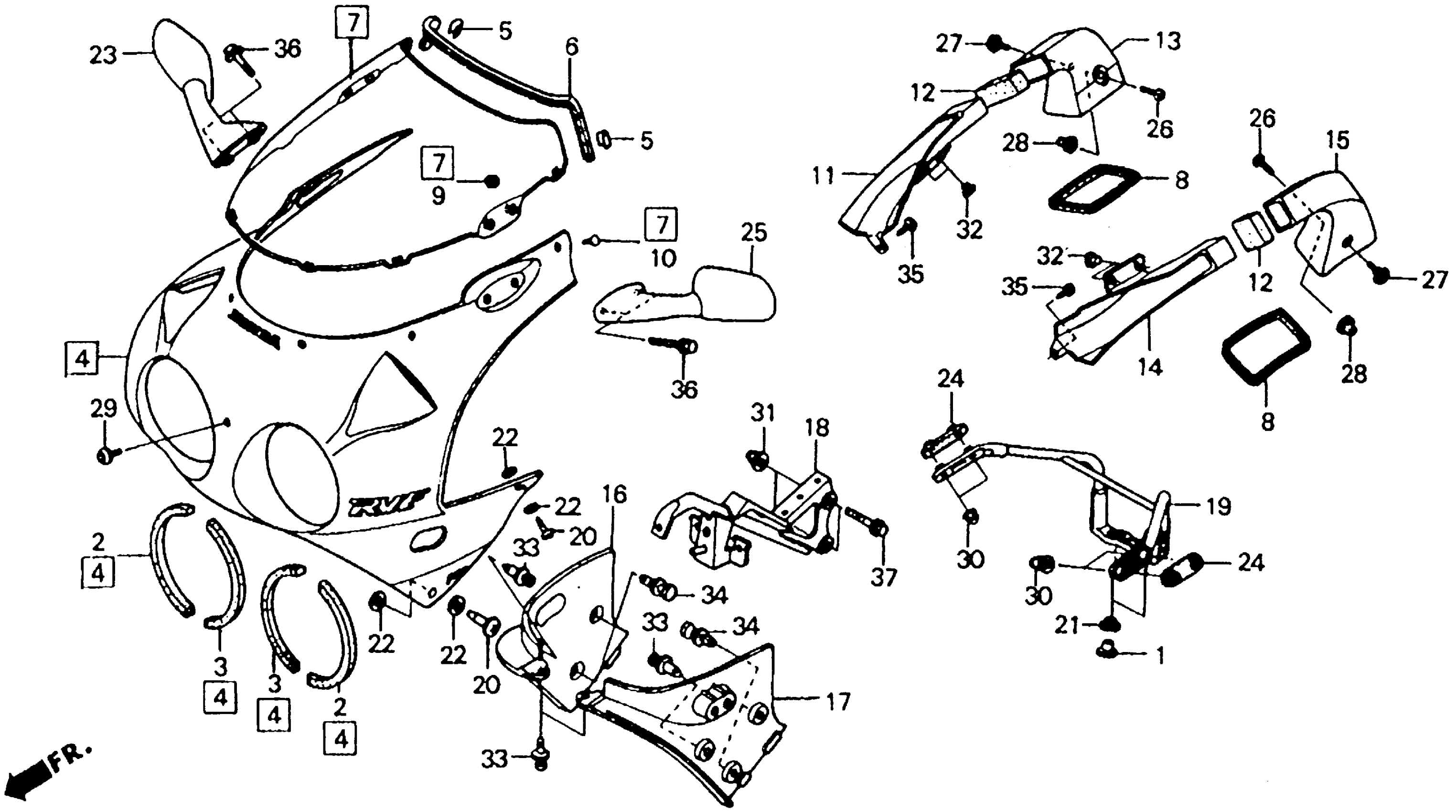 Honda RVF750RA (94) RC45, JPN, VIN# JH2RC450-RM000006 UPPER COWL Diagram