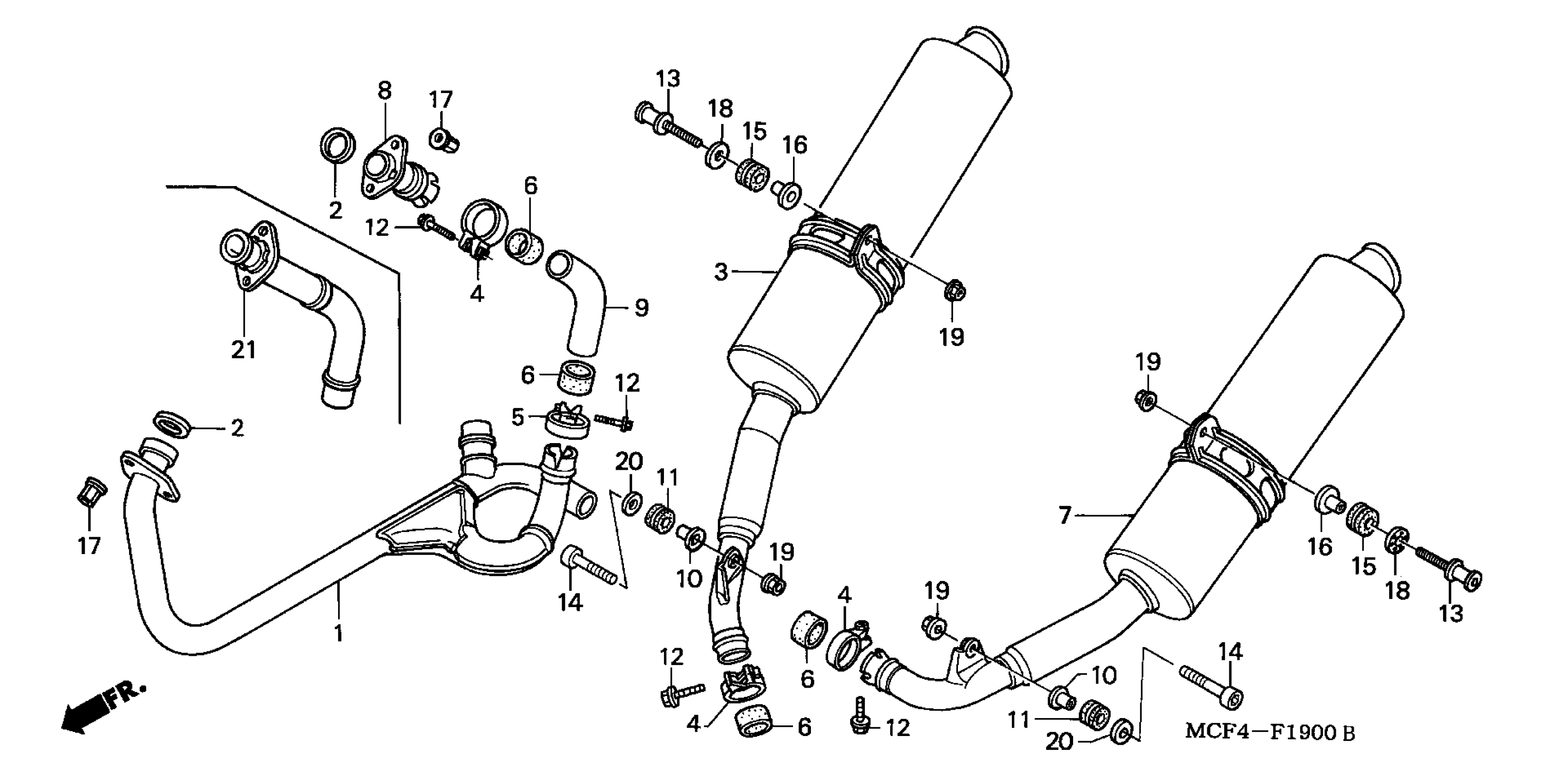 Honda RVT1000RA (01) RC51, JPN, VIN# JH2SC453-1M100001 TO JH2SC453-1M199999 MUFFLER Diagram
