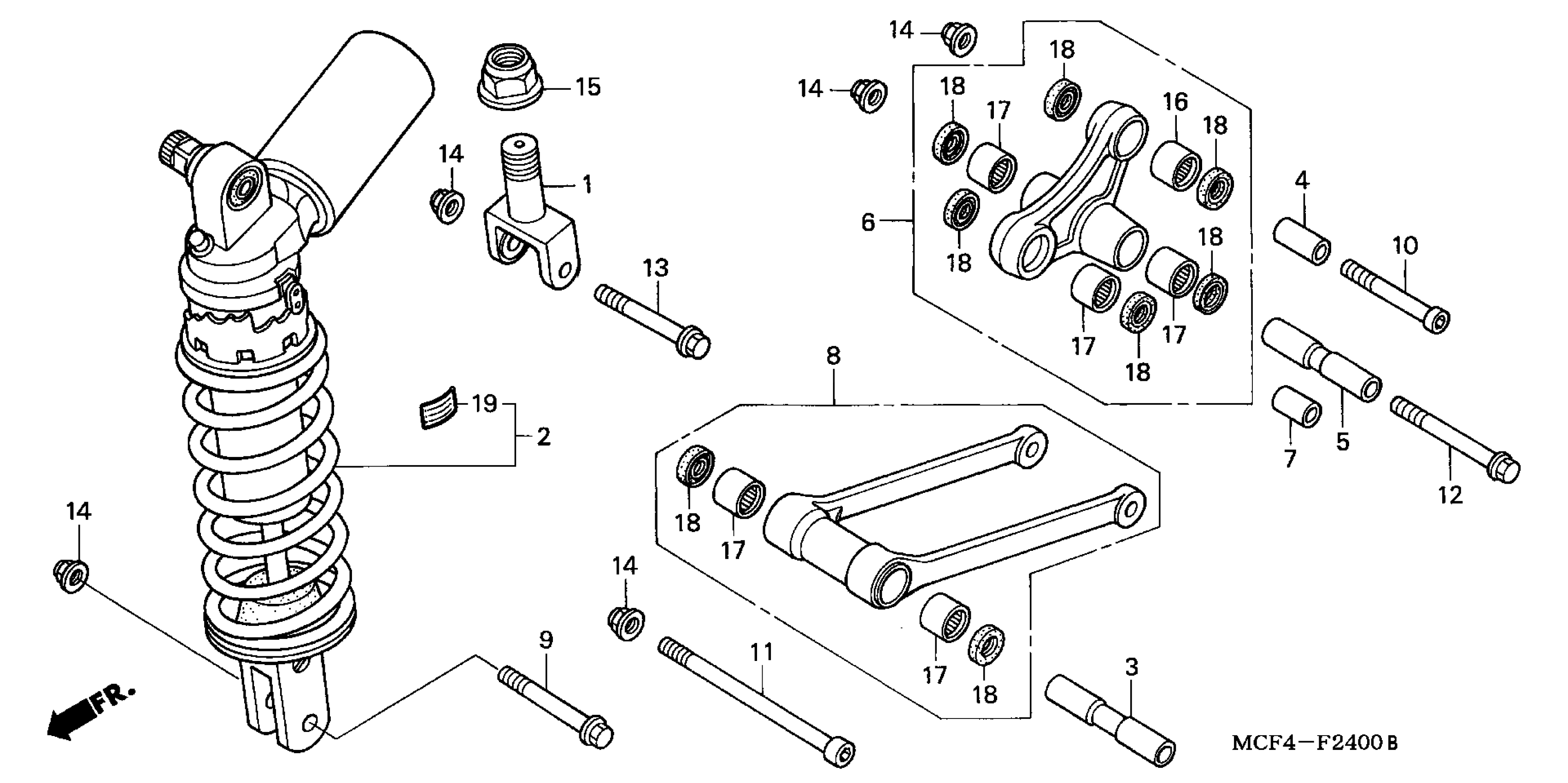 Honda RVT1000RA (01) RC51, JPN, VIN# JH2SC453-1M100001 TO JH2SC453-1M199999 REAR SHOCK ABSORBER ('00-'01) Diagram