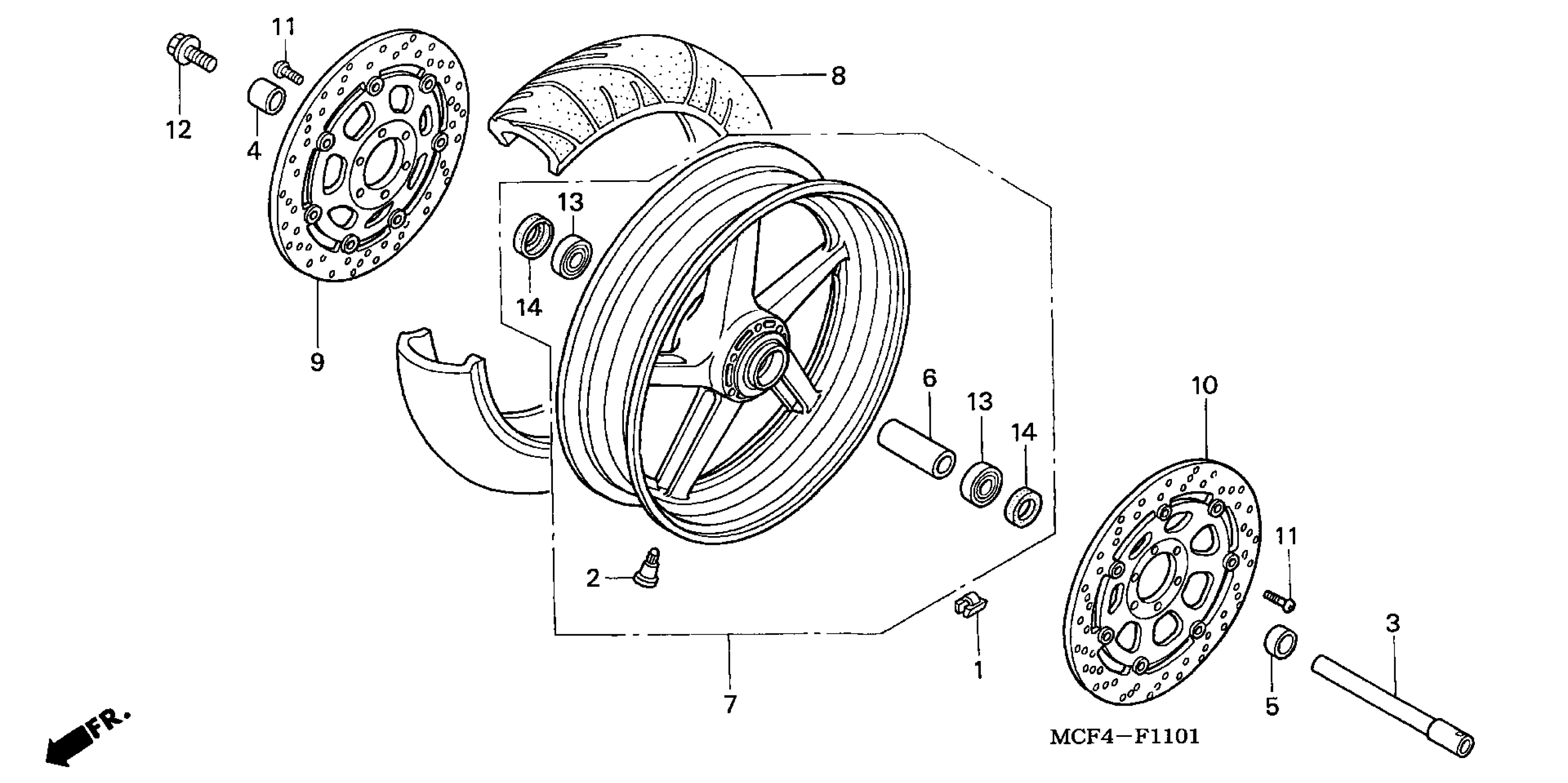 Honda RVT1000RA (03) RC51, JPN, VIN# JH2SC453-3M300001 TO JH2SC453-3M399999 FRONT WHEEL ('02-'05) Diagram