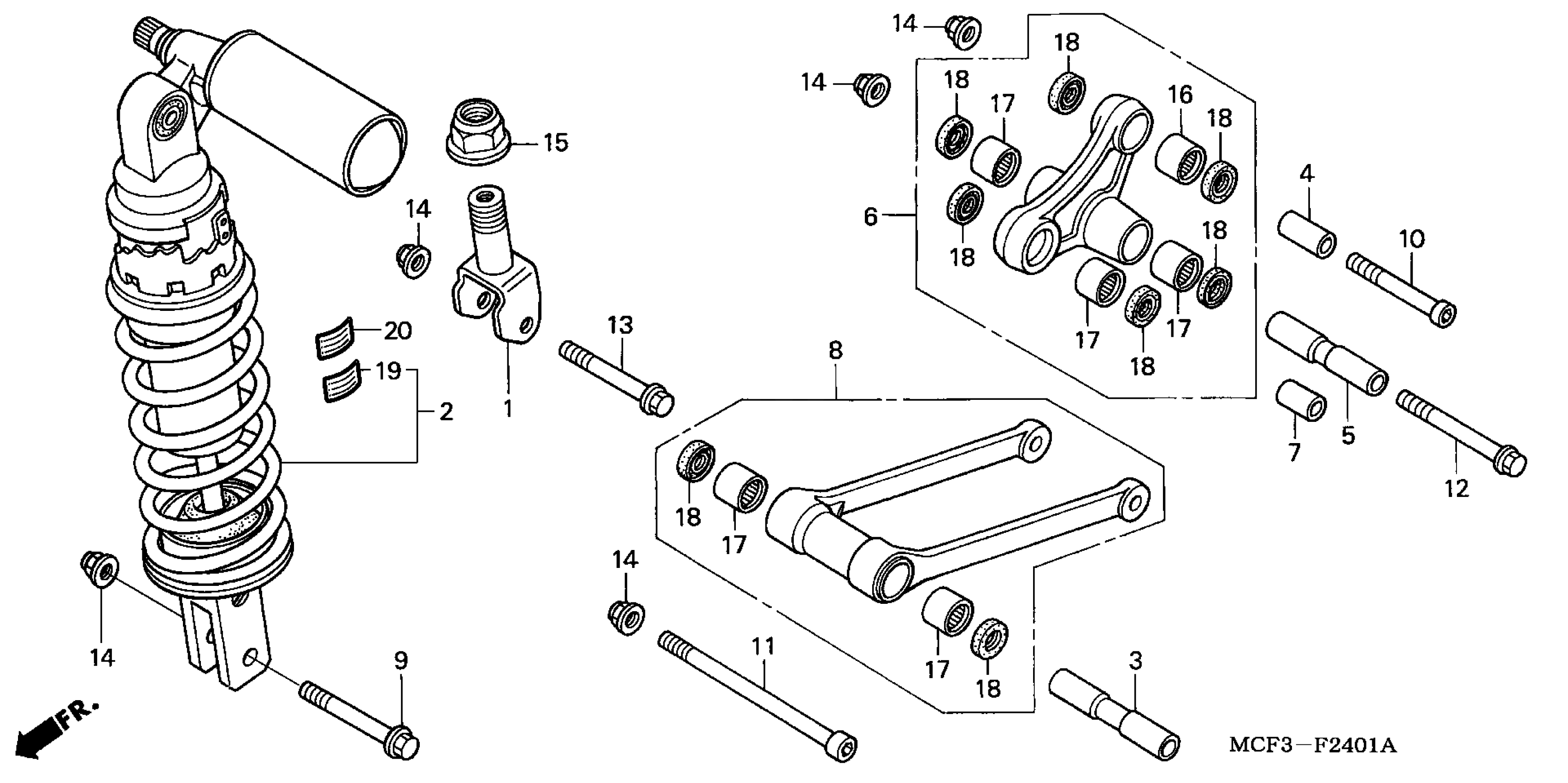 Honda RVT1000RA (05) RC51, JPN, VIN# JH2SC450-5M500001 REAR SHOCK ABSORBER ('02-'05) Diagram