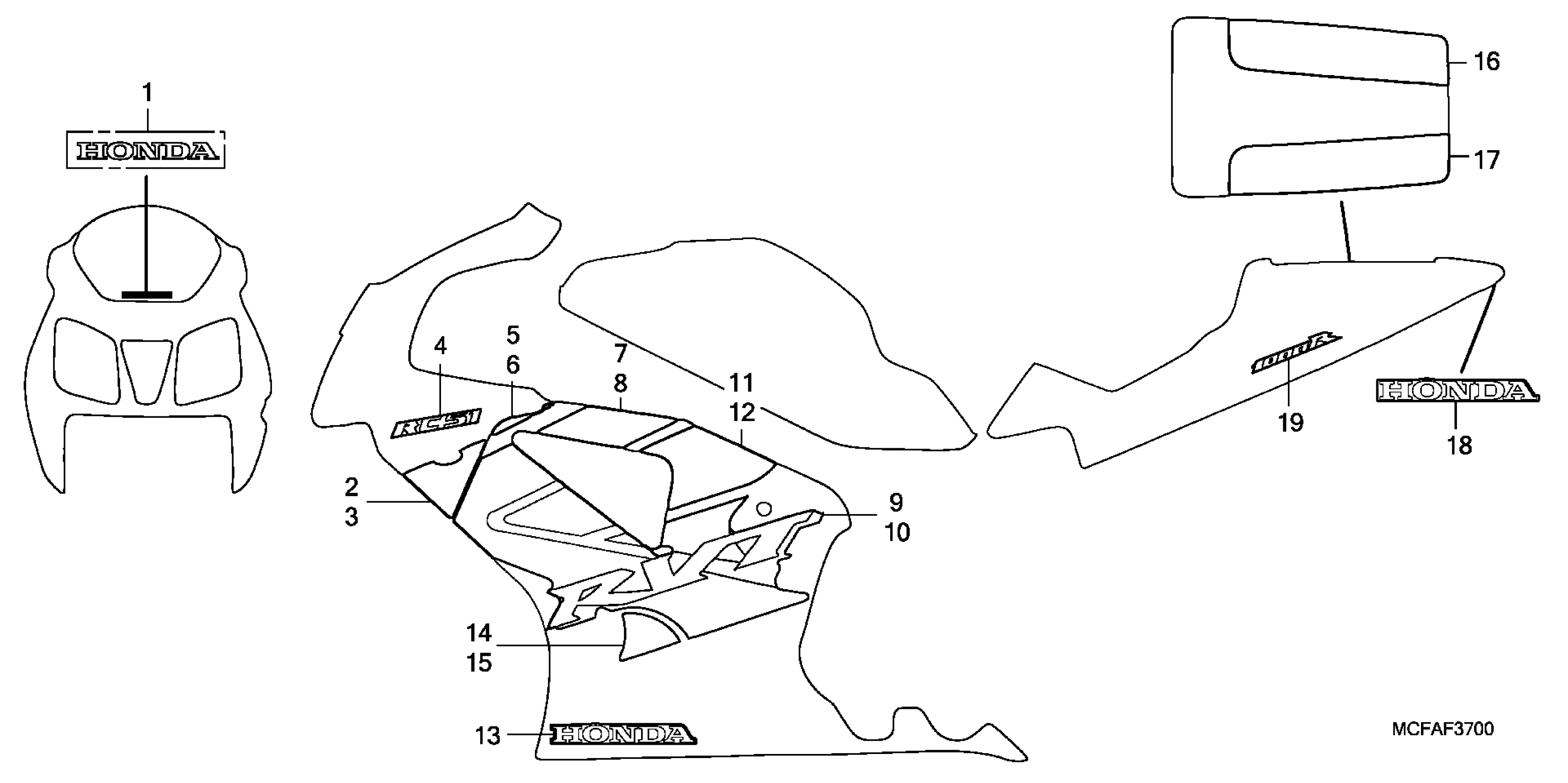 Honda RVT1000RA (06) RC51, JPN, VIN# JH2SC450-6M600001 MARK + STRIPE Diagram