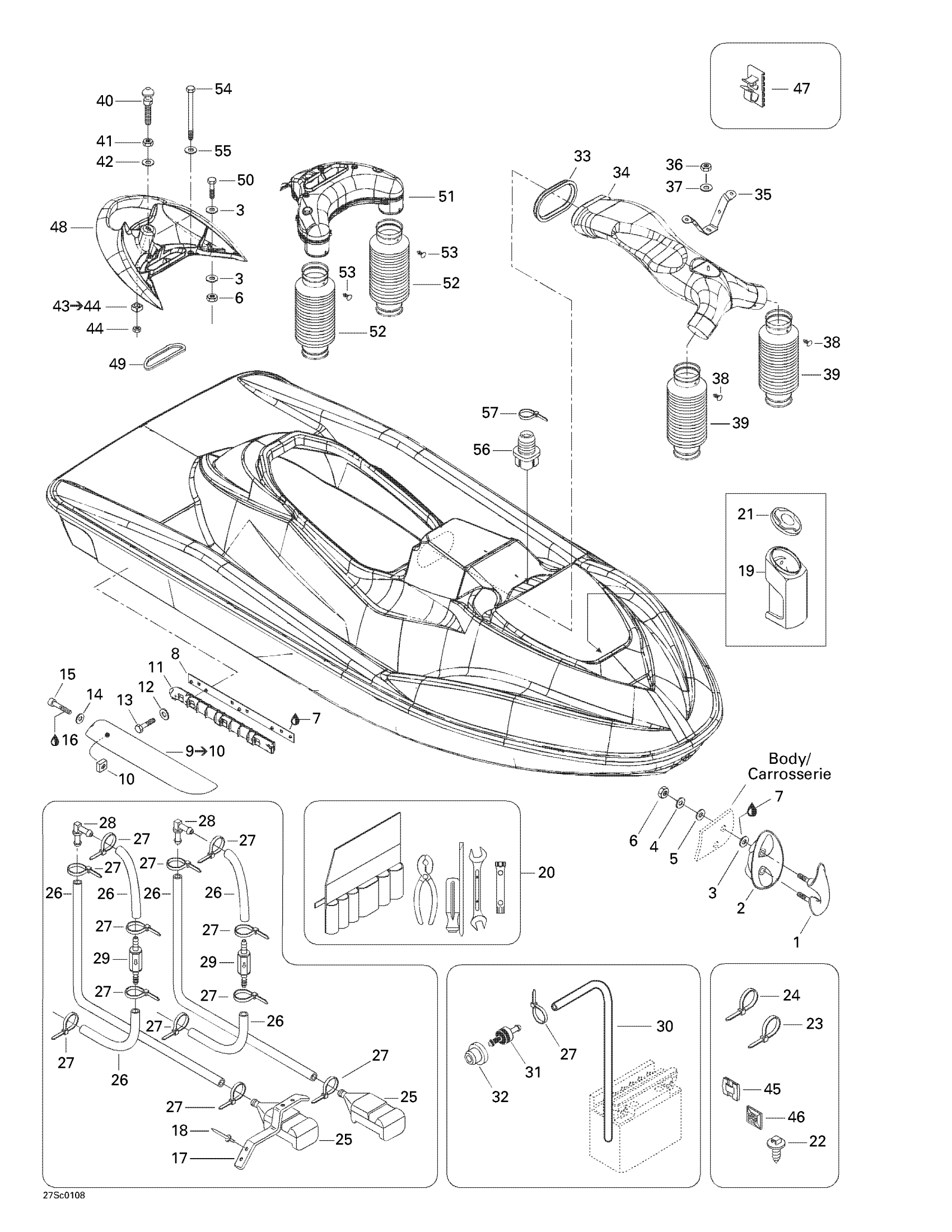 Sea-doo RX, 5532/5533/5542/5543, 2001 Body Diagram