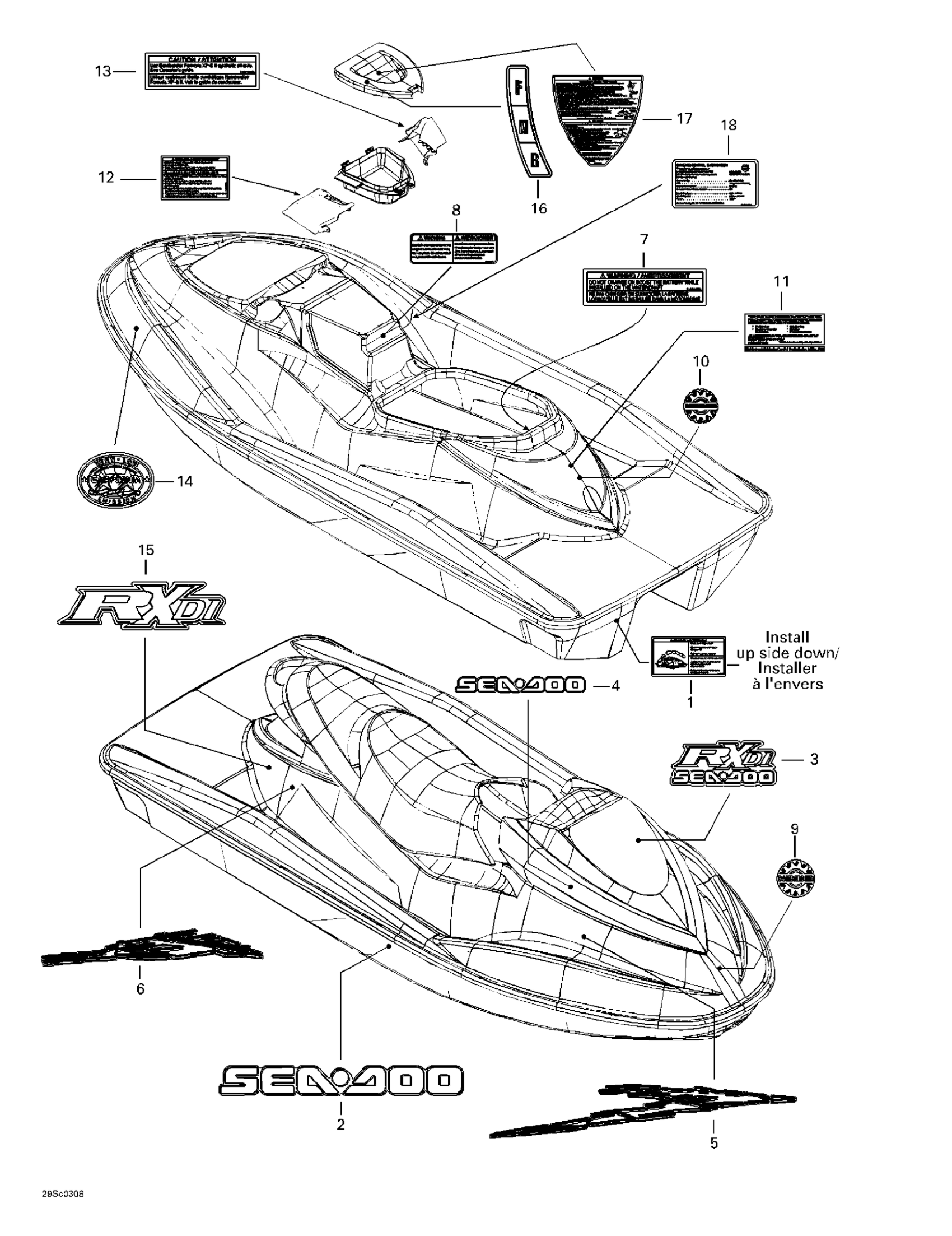 Sea-doo RX DI, 6122/6123, 2003 Decals Diagram