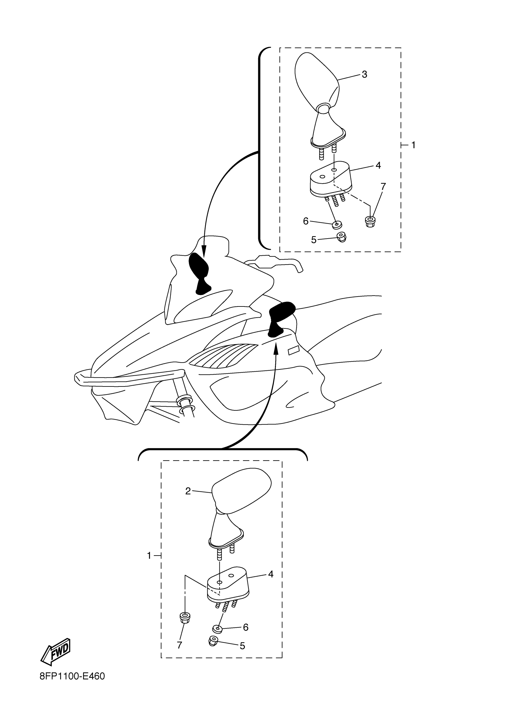 Yamaha RX10GTL (APEX GT) 8GD1 2006 ALTERNATE REAR VIEW MIRROR Diagram