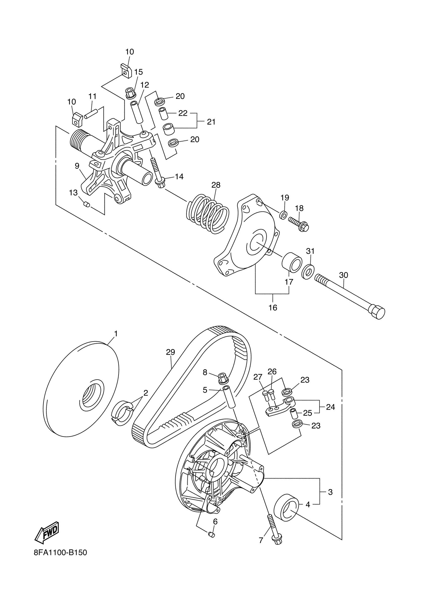 Yamaha RX10RSH (RX-1 ER LE) 8EW1 2003 PRIMARY SHEAVE Diagram