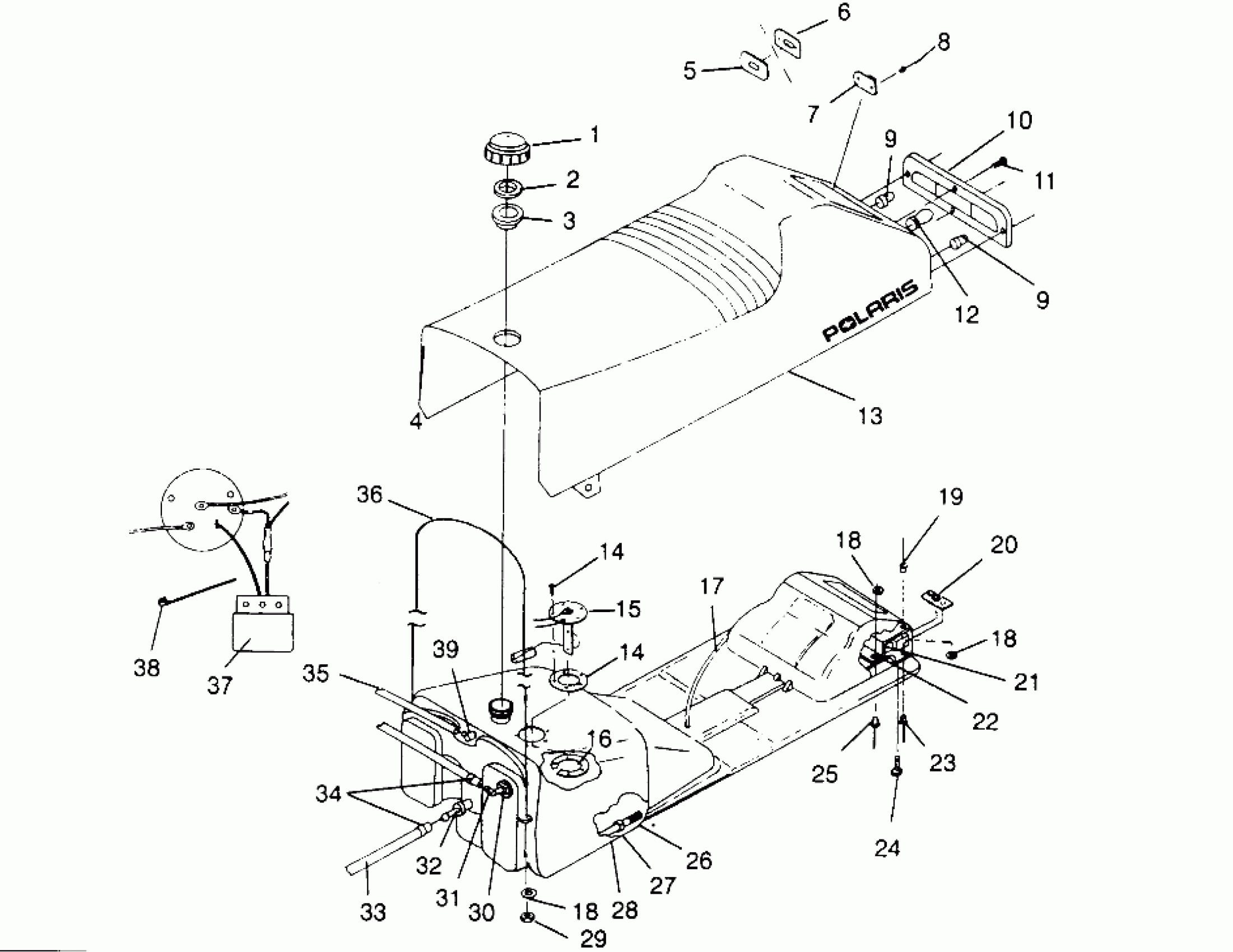 Polaris RXL - 0966768 SEAT and GAS TANK RXL 0966768 (4932033203A006) Diagram
