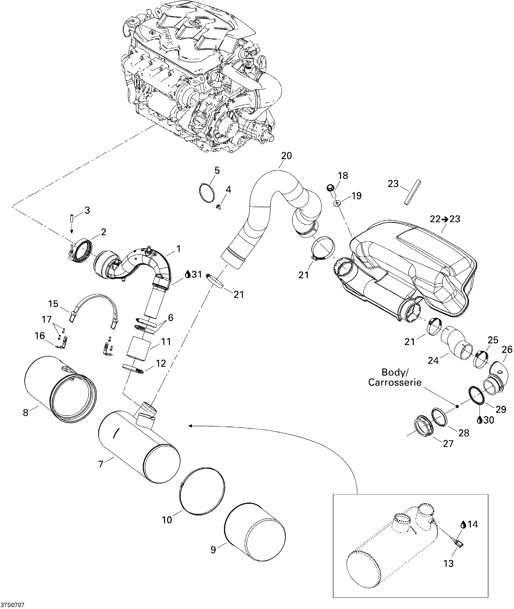Sea-doo RXP 1503 BVIC, 2007 01- Exhaust System 1503 BVIC Diagram