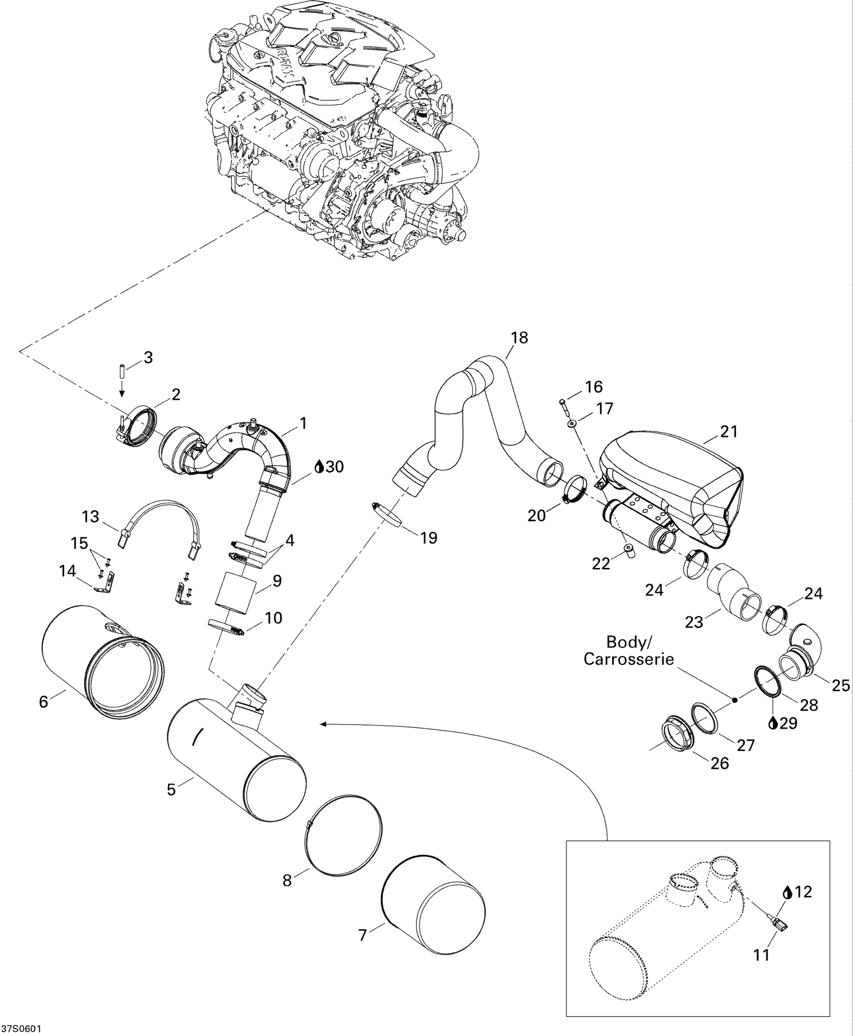 Sea-doo RXP, 2006 01- Exhaust System Diagram