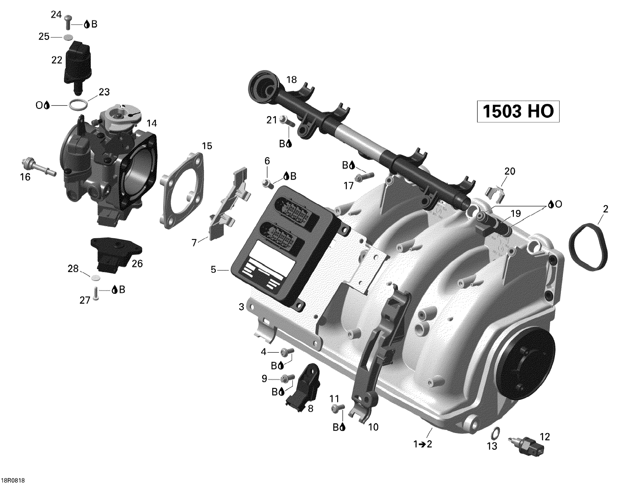Sea-doo RXP X 255, 2008 02- Air Intake Manifold And Throttle Body Diagram