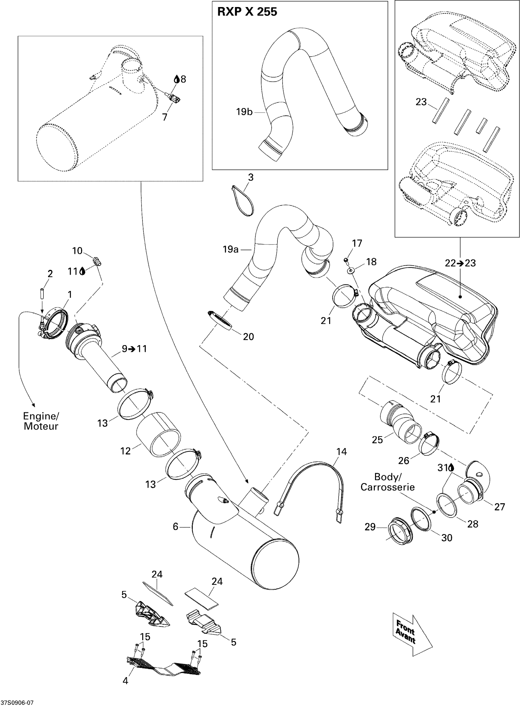 Sea-doo RXP-X 255 and 255 RS, 2009 01- Exhaust System Diagram