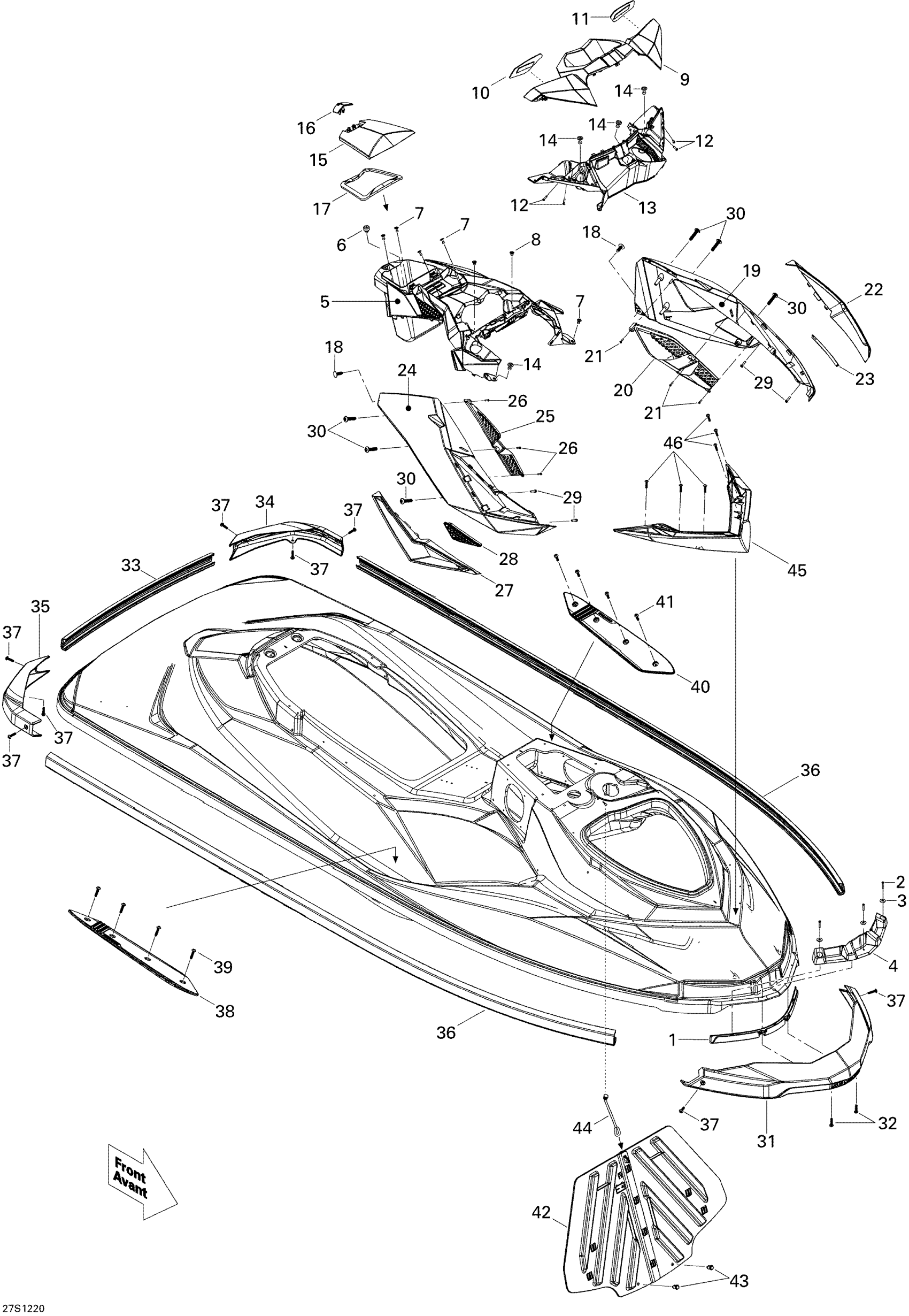 Sea-doo RXP-X 260 & RS, 2012 Body, Front View Diagram