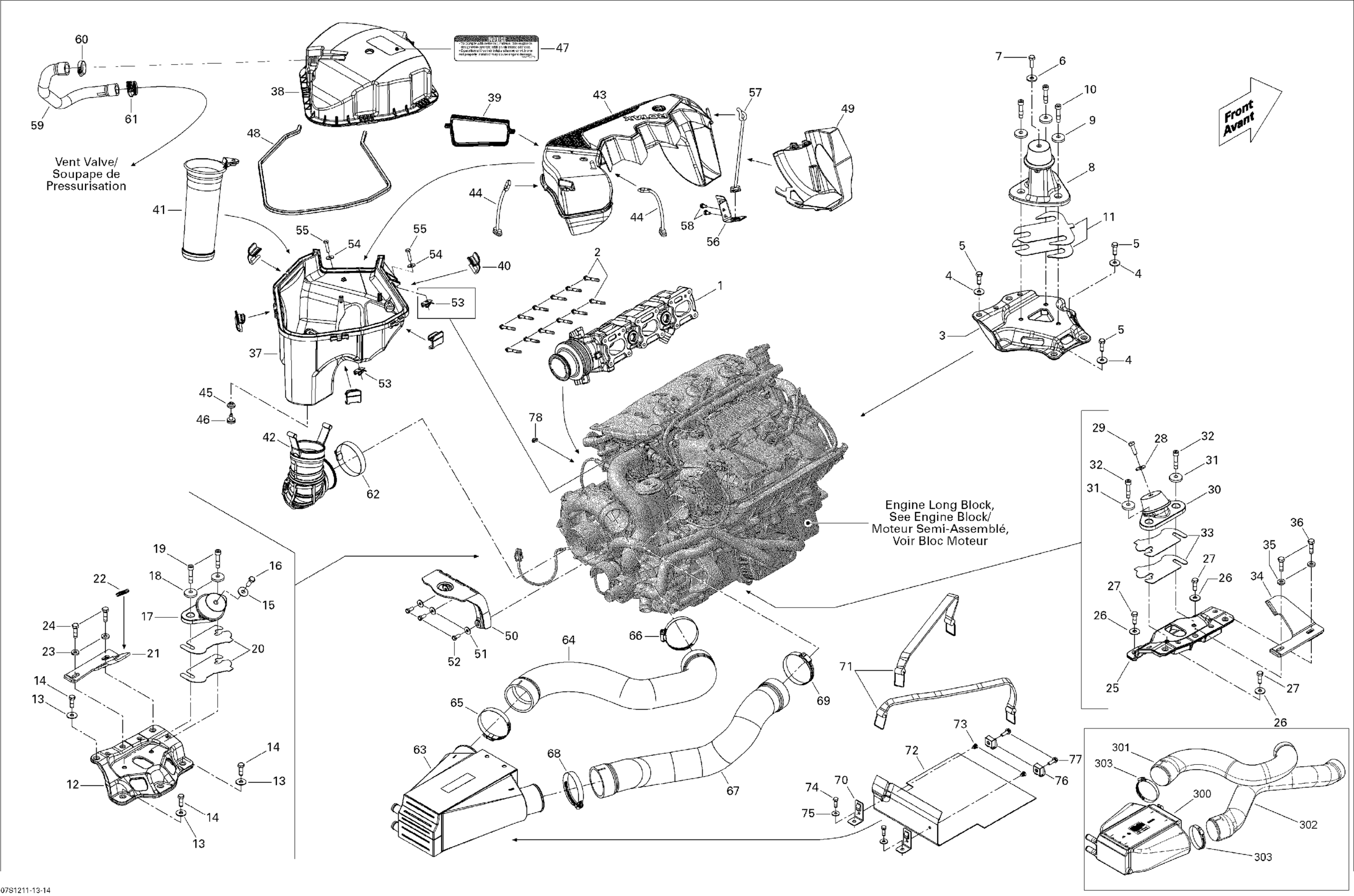 Sea-doo RXT 260 (IS), 2012 01- Engine And Air Intake Silencer Diagram