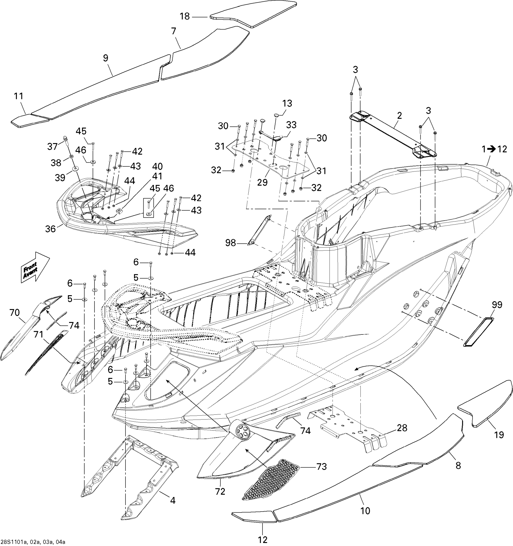 Sea-doo RXT aS X & aS XRS 260, 2011 09- Body, Rear View 1 Diagram