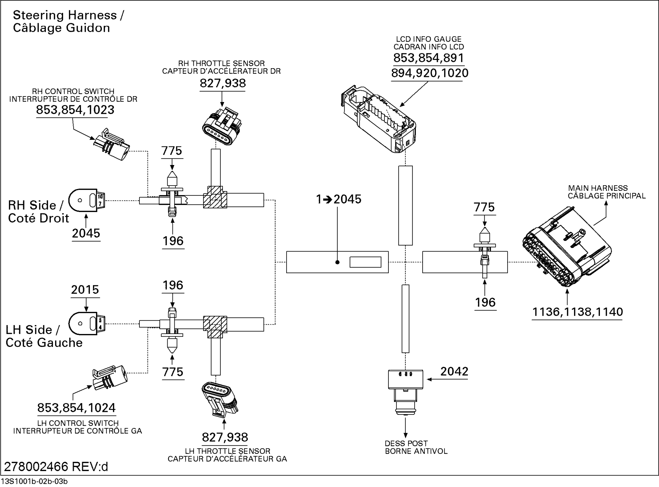 Sea-doo RXT iS 260, 2010 10- Electrical Harness 2, Steering Diagram