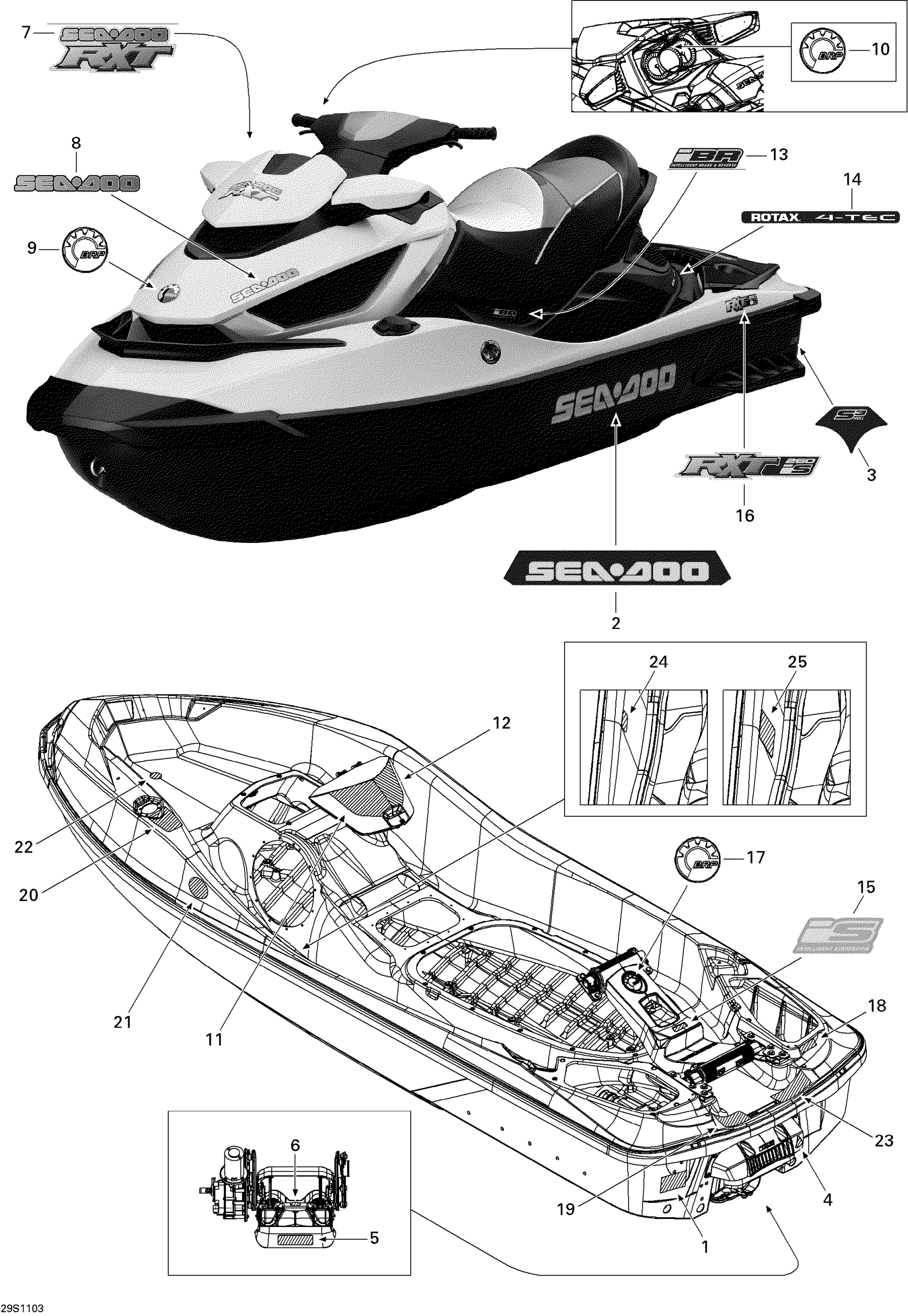Sea-doo RXT iS 260, 2011 09- Decals Diagram