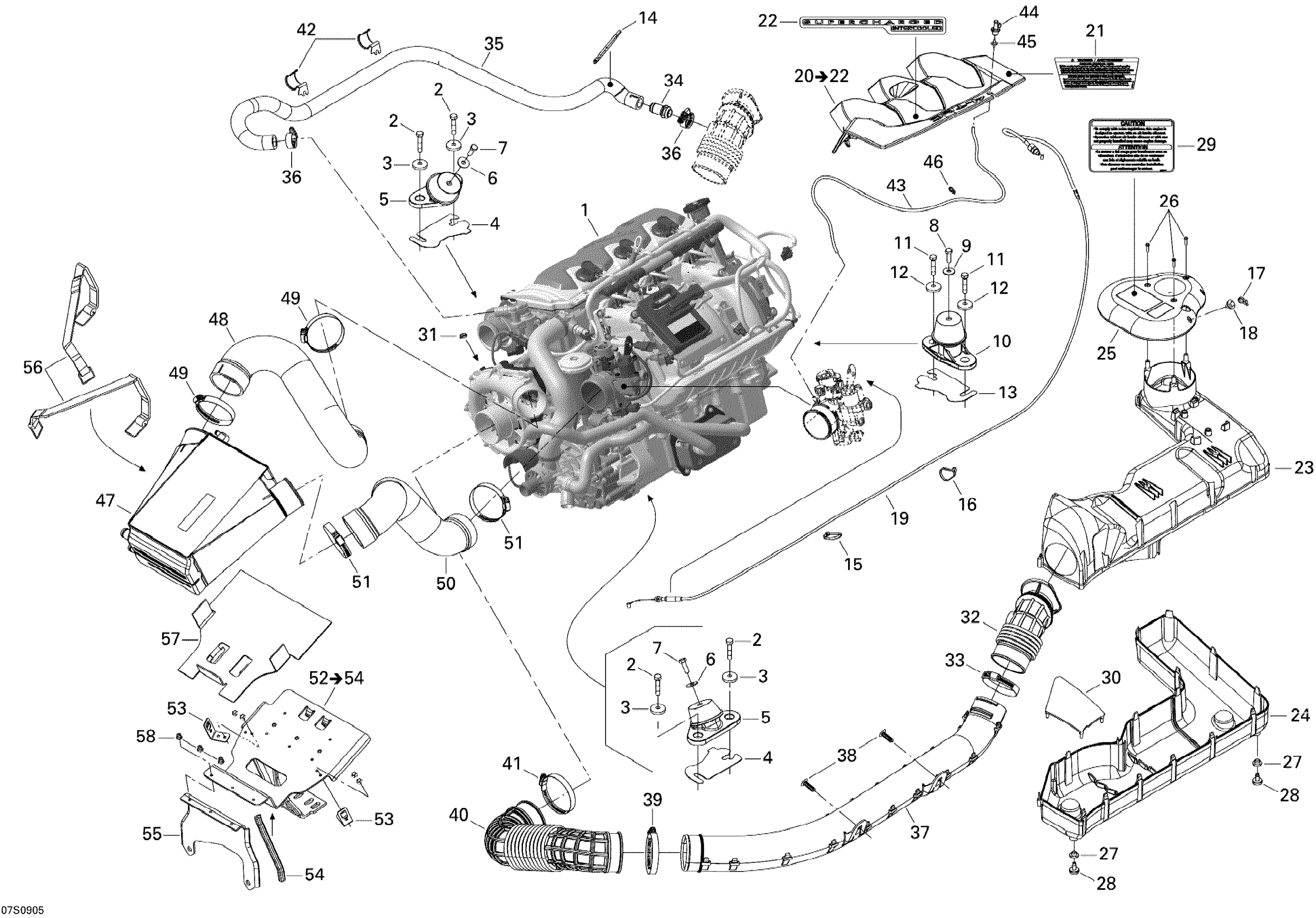 Sea-doo RXT-X 255 and 255 RS, 2009 01- Engine And Air Intake Silencer Diagram