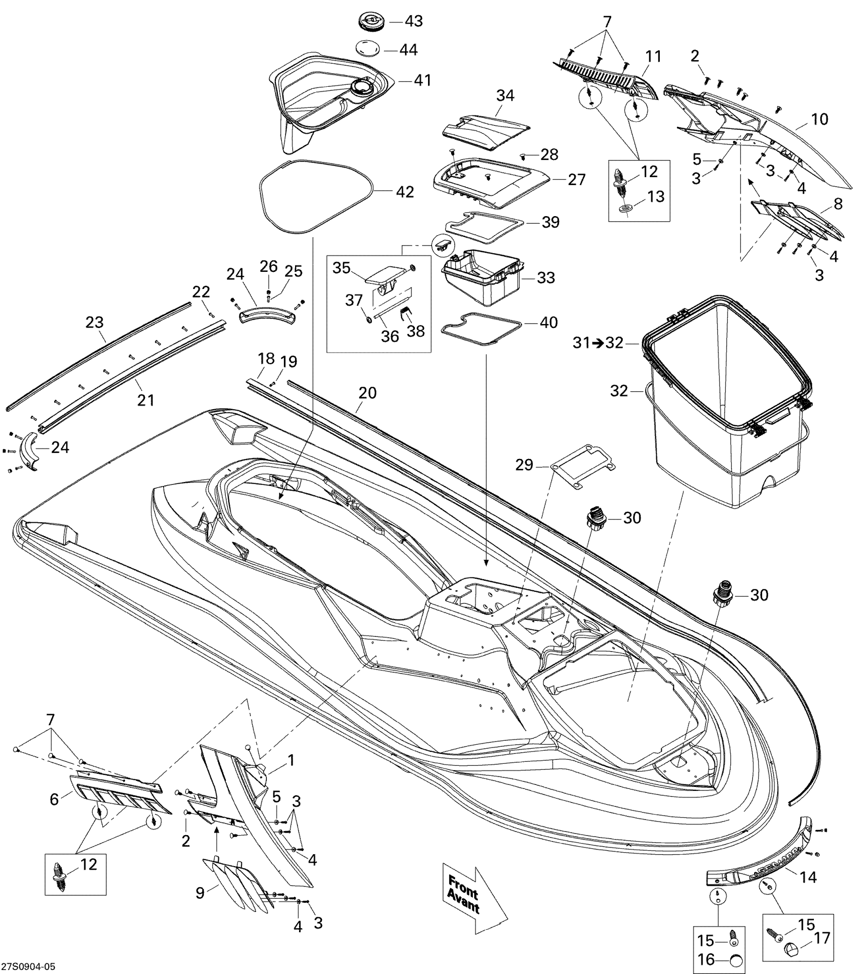 Sea-doo RXT-X 255 and 255 RS, 2009 09- Body, Front View Diagram