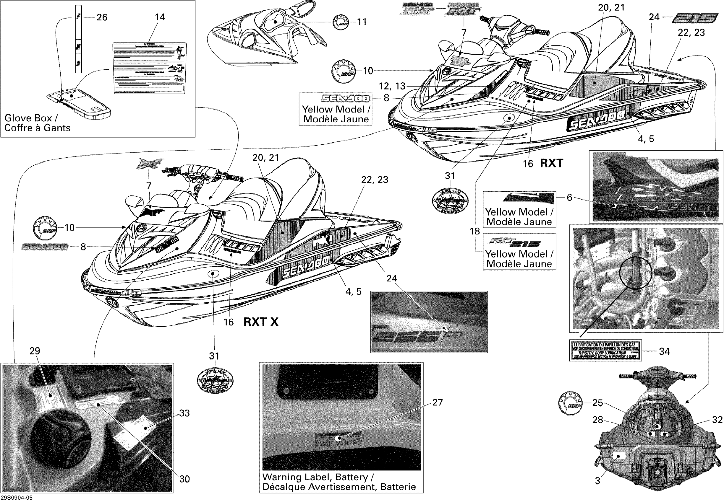 Sea-doo RXT-X 255 and 255 RS, 2009 09- Decals Diagram