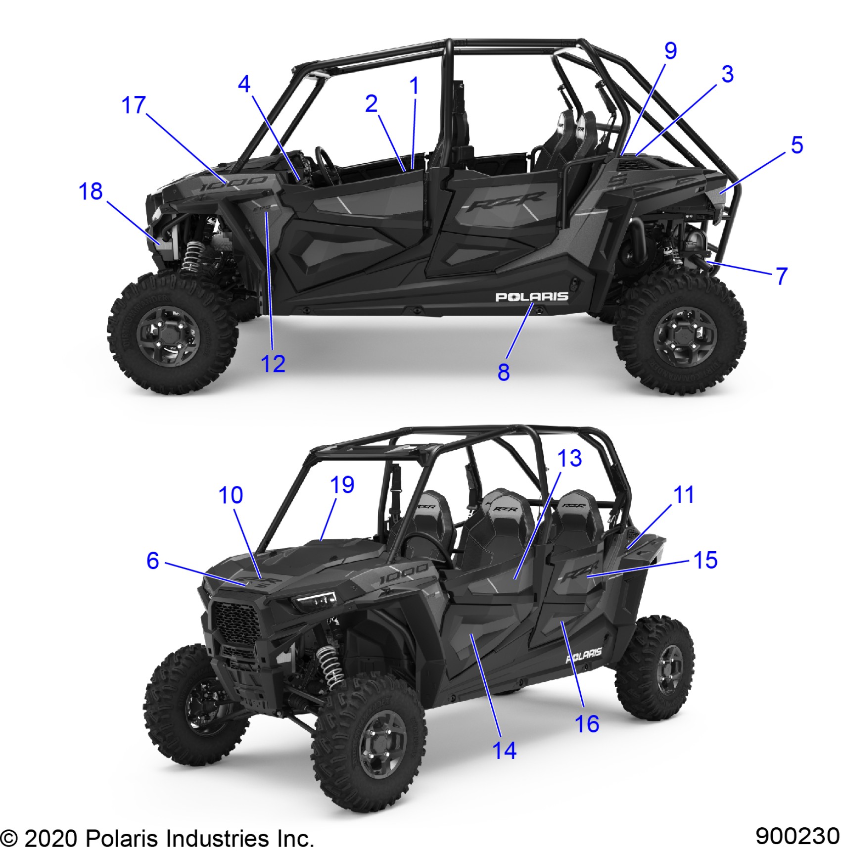 Polaris RZR 1000 S4 (R01) - Z21A4E99AX/BX BODY, DECALS - Z21A4E99AX/BX (900230) Diagram