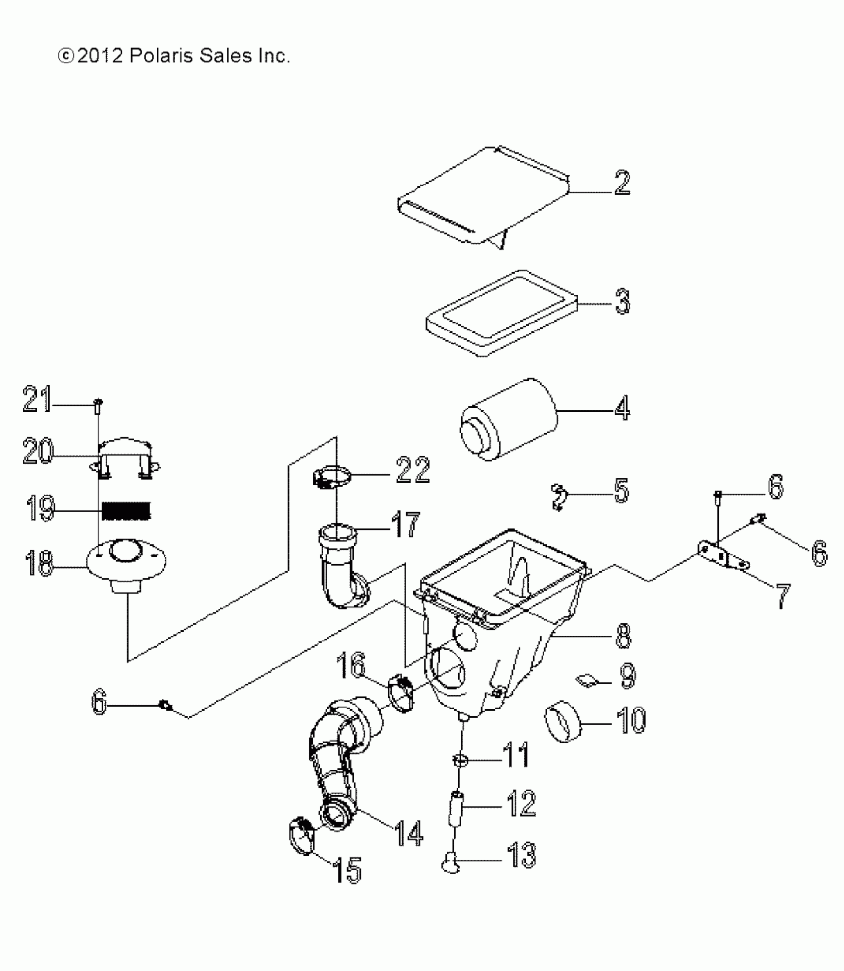 Polaris RZR 170 - R13VA17AA/AB ENGINE, AIR INTAKE SYSTEM - R13VA17AA/AB (49RGRAIRBOX13RZR170) Diagram