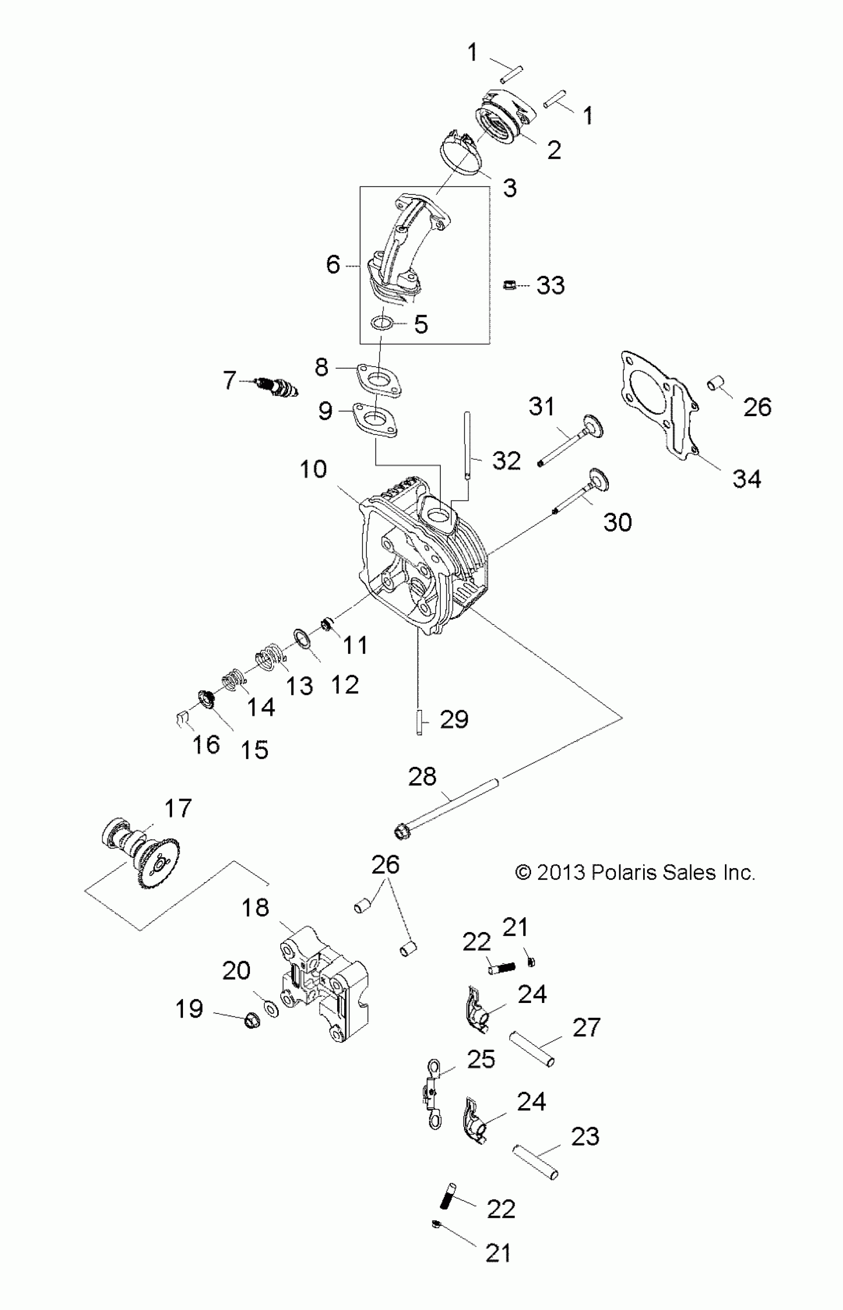 Polaris RZR 170 - R14VA17AA/AF ENGINE, CYLINDER HEAD - R14VA17AA/AF (49RGRCYLINDER14RZR170) Diagram