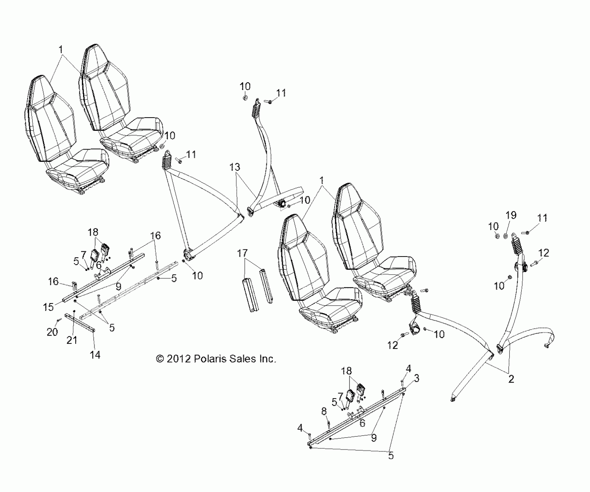 Polaris RZR 4 800 EFI - R12XE76AD/7EAB/EAO BODY, SEAT MOUNTING and BELTS - R12XE76AD/7EAB/EAO (49RGRSEATMTG12RZR4) Diagram