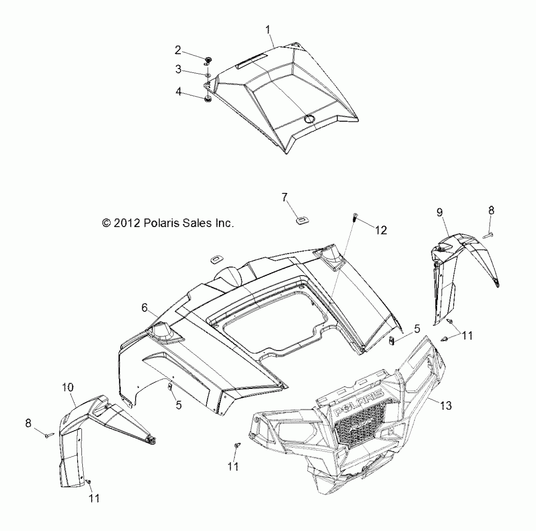 Polaris RZR 4 800 EFI - R13XE76AD/EAI BODY, HOOD and FRONT BODY WORK - R13XE76AD/EAI (49RGRHOOD13RZR4) Diagram