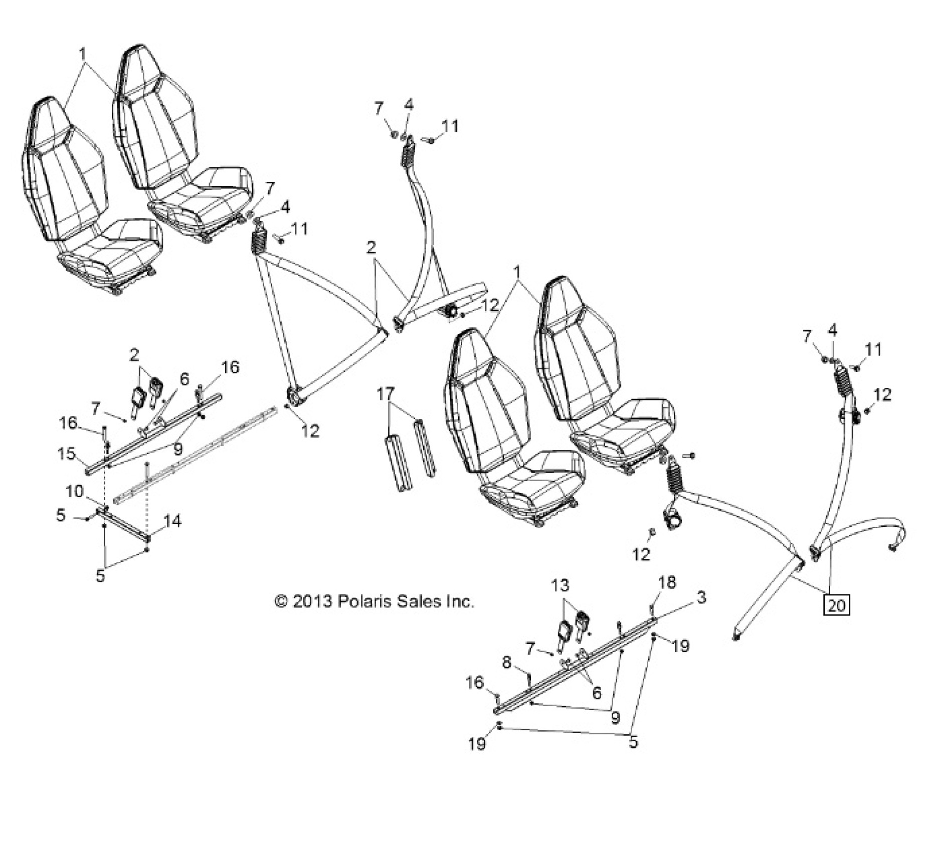 Polaris RZR 4 900 - Z14XT9EAO BODY, SEAT MOUNTING and BELTS - Z14XT9EAO (49RGRSEATMTG14RZR9004) Diagram