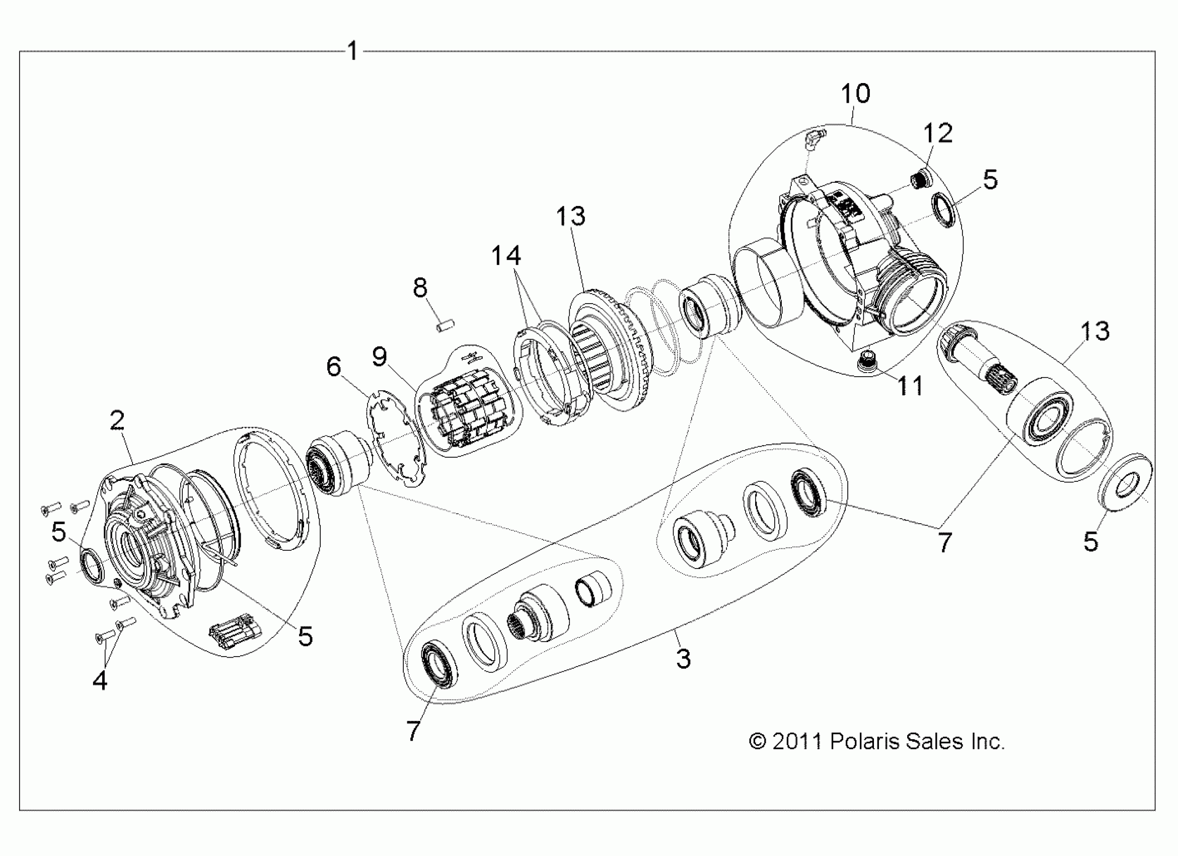 Polaris RZR 4/EPS RGE - R11XH76AW/AZ/XY76AA DRIVE TRAIN, FRONT GEARCASE INTERNALS 1332842 - R11XH76AW/AZ/XY76AA (49RGRTRANSINTL1332842) Diagram