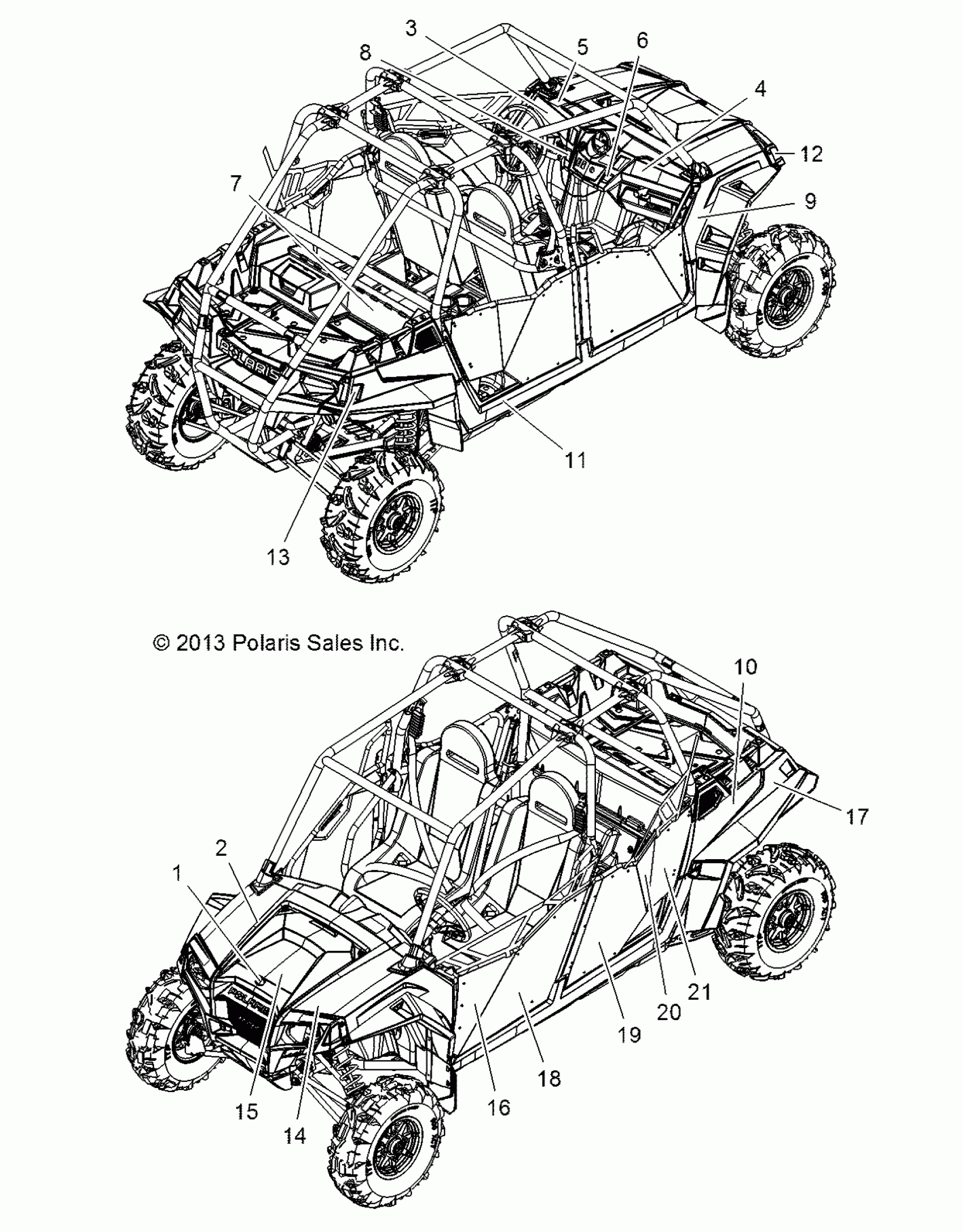 Polaris RZR 4 XP JAGGED X - R13XT9EAL BODY, DECALS - R13XT9EAL (49RGRDECAL13JAGX) Diagram