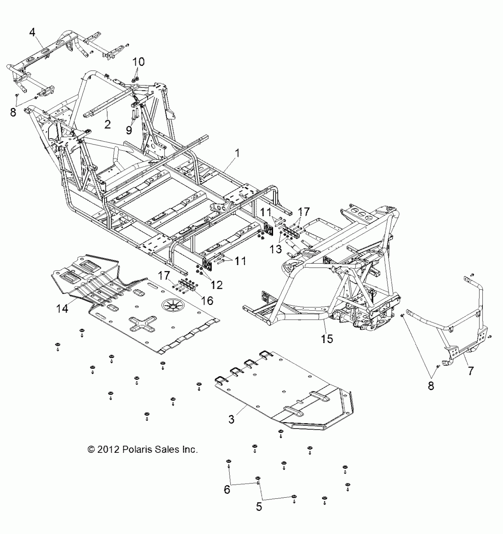 Polaris RZR 4 XP JAGGED X - R13XT9EAL CHASSIS, MAIN FRAME and SKID PLATE - R13XT9EAL (49RGRFRAME13JAGX) Diagram