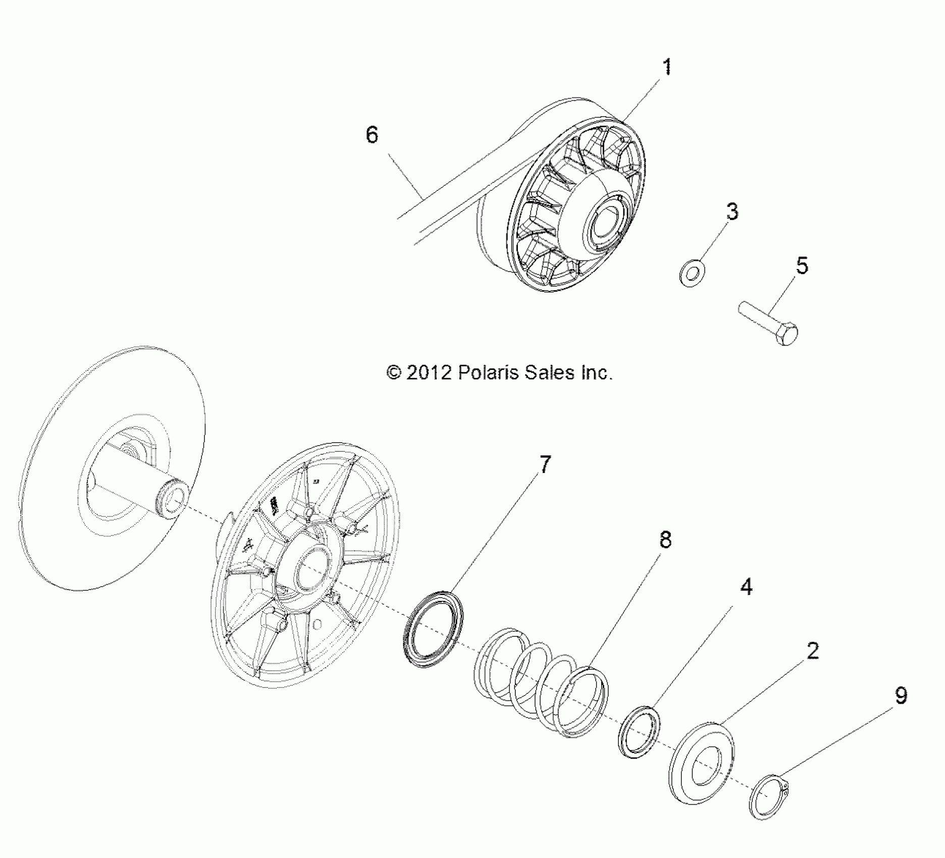 DRIVE TRAIN, SECONDARY CLUTCH - R12VH57AD (49RGRCLUTCHDVN12RZR570)