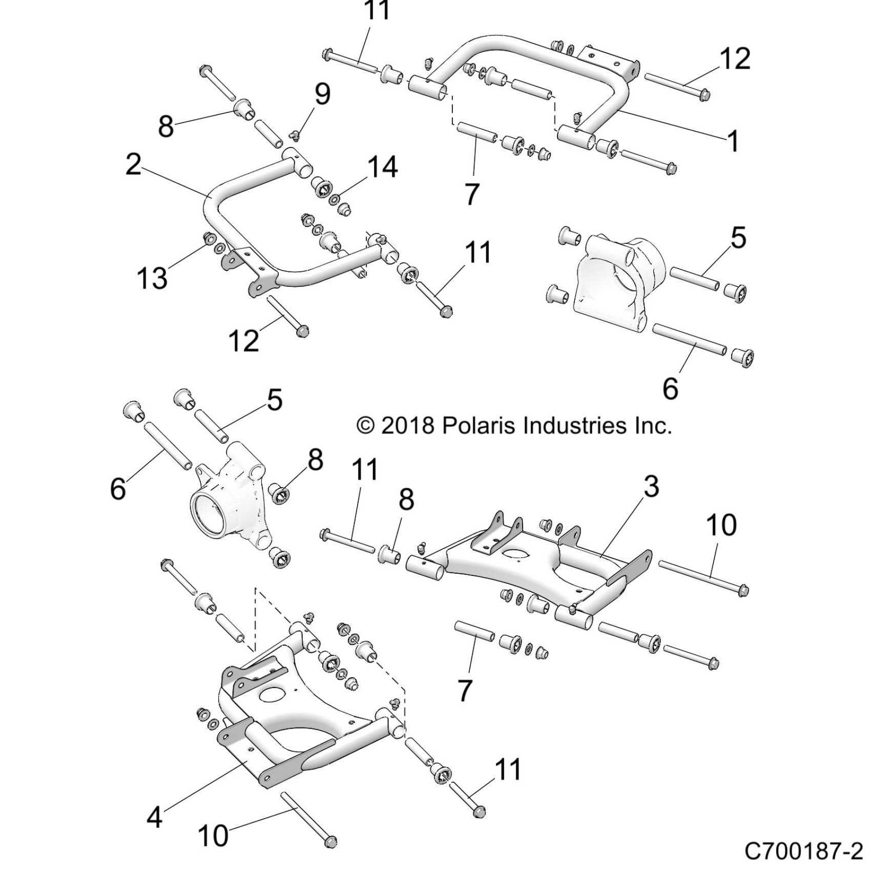 Polaris RZR 570 (R03) - Z20CHA57A2/E57AM SUSPENSION, REAR CONTROL ARMS - Z20CHA57A2/E57AM (C700187-2) Diagram