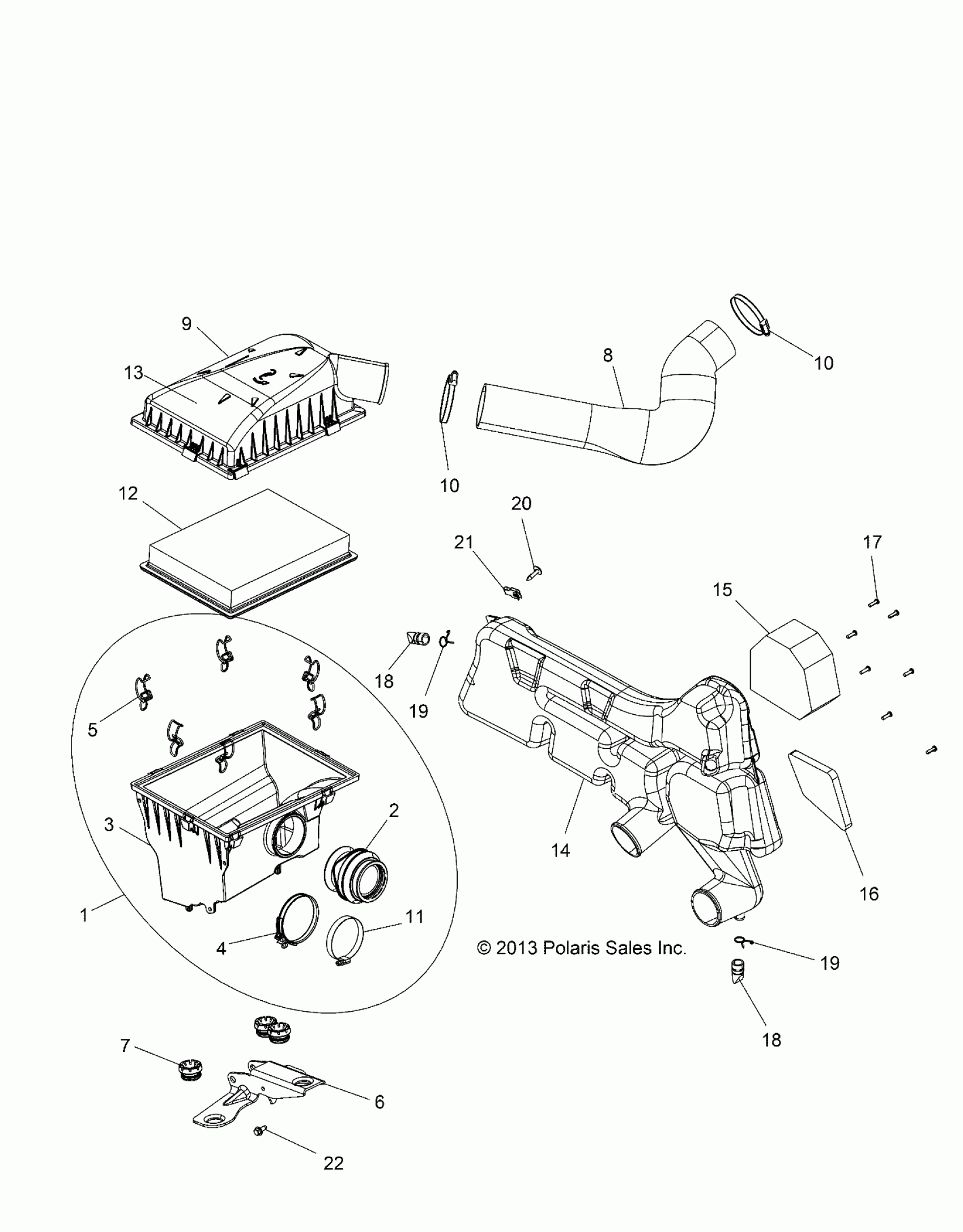 Polaris RZR 570 - Z14VH57AD/6EAI/6EAW ENGINE, AIR INTAKE SYSTEM - Z14VH57AD/6EAI/6EAW (49RGRAIRBOX14RZR570) Diagram