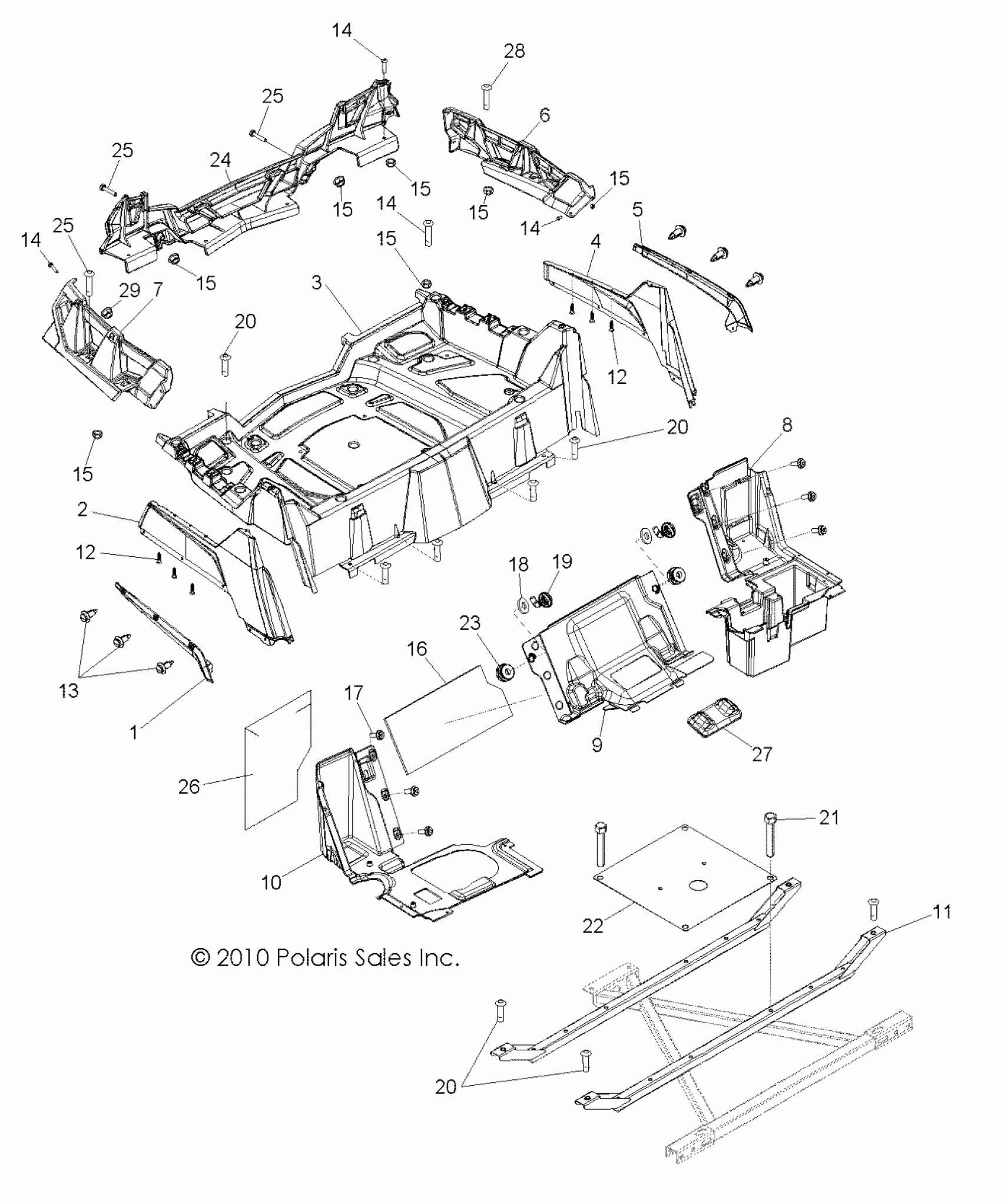 Polaris RZR 800 EFI/EPS - R12VH76AB/AD/AF/AH/AI/AJ/AM/EAB/EAS BODY, REAR RACK and FENDERS - R12VH76AB/AD/AF/AH/AI/AJ/AM/EAB/EAS (49RGRRACKMTG11RZR) Diagram