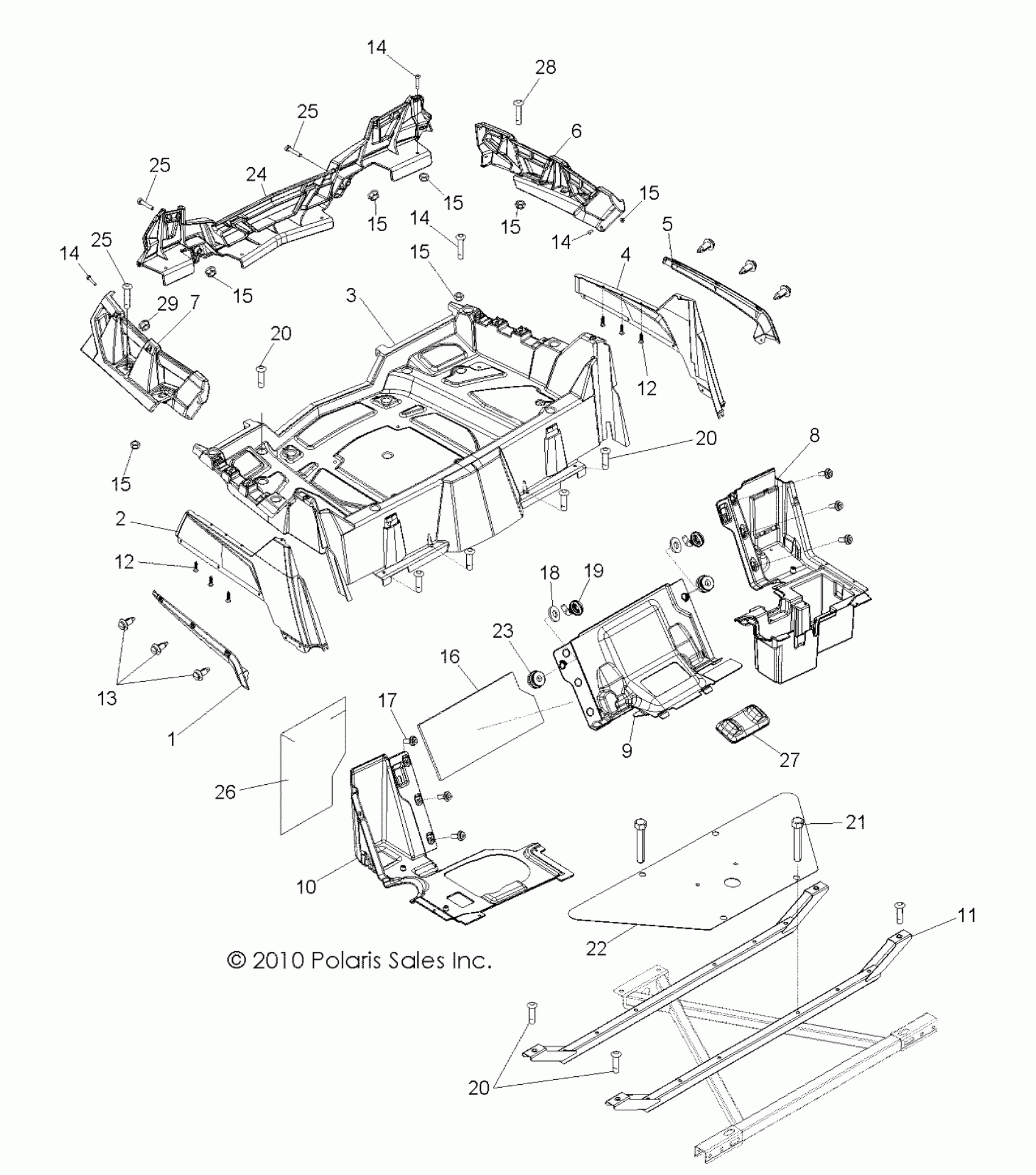 Polaris RZR 800 - Z14VH76AC/AD/EAI/EAK/EAJ/EAL/EAW BODY, REAR RACK and FENDERS - Z14VH76AC/AD/EAI/EAK/EAJ/EAL/EAW (49RGRRACKMTG13RZR) Diagram