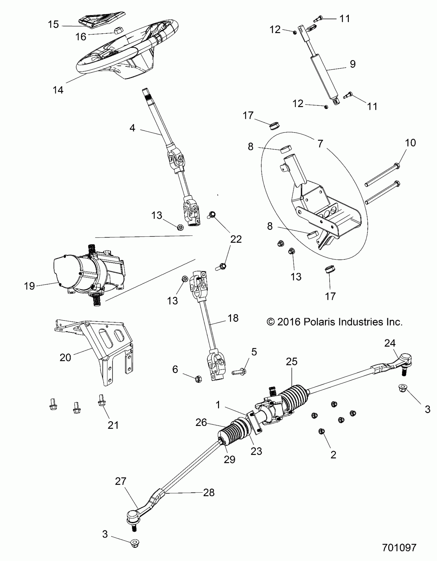 Polaris RZR 900 50/55 INCH ALL OPTIONS (R08) - Z17VAA87/E87/X87 STEERING, POWER STEERING ASM. - Z17VAE87AB/AK (701097) Diagram