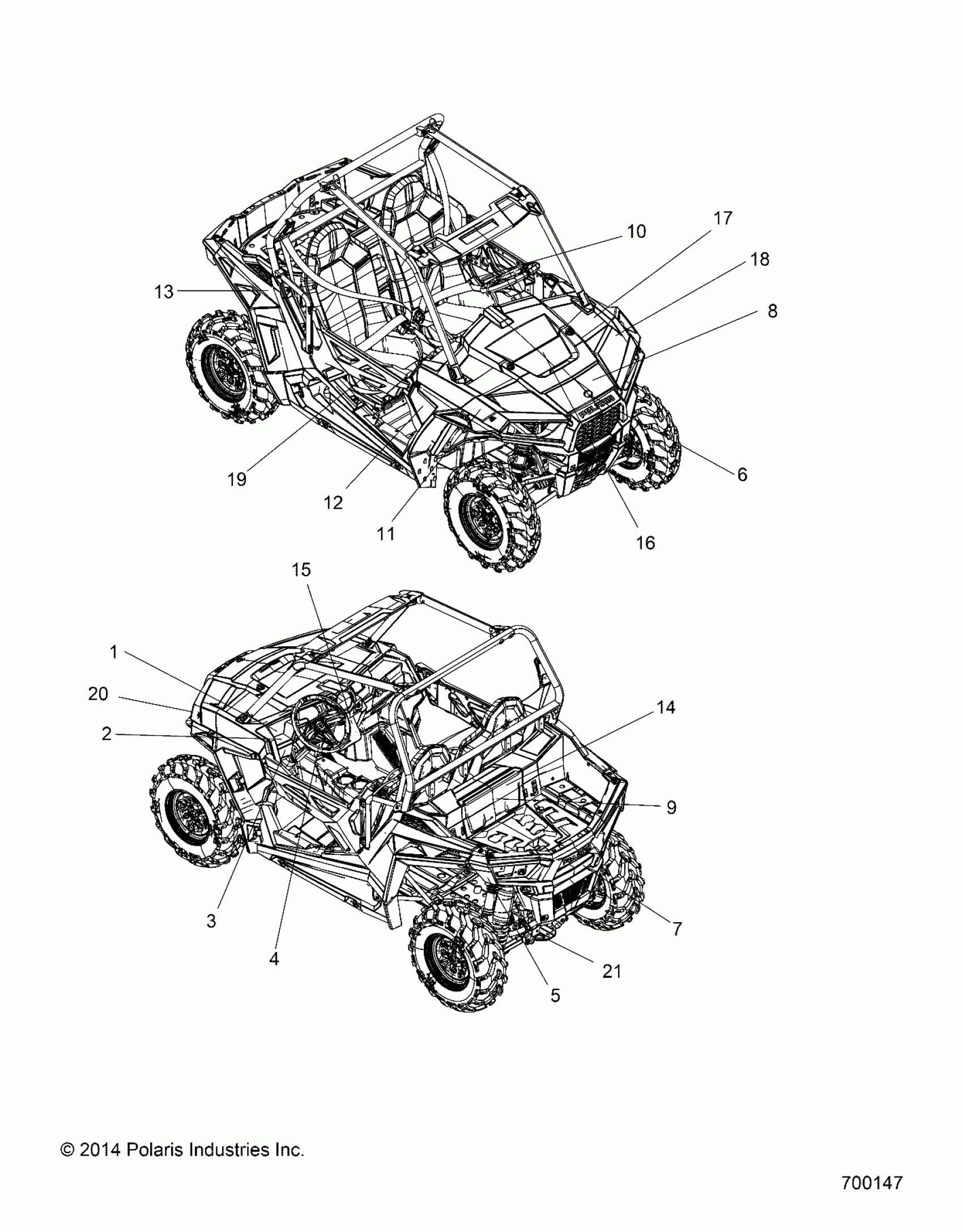 Polaris RZR 900 50/55 INCH ALL OPTIONS - Z15VAA87/E87/X87 BODY, DECALS - Z15VA87 ALL OPTIONS (700147) Diagram