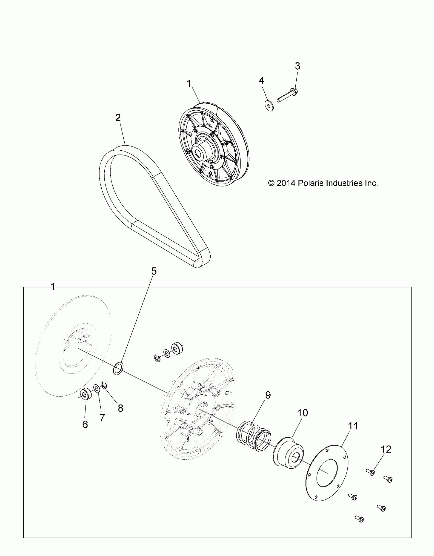 Polaris RZR 900 50/55 INCH ALL OPTIONS - Z15VAA87/E87/X87 DRIVE TRAIN, SECONDARY CLUTCH - Z15VAA87AJ/AC (49RGRCLUTCHDVN1323246) Diagram
