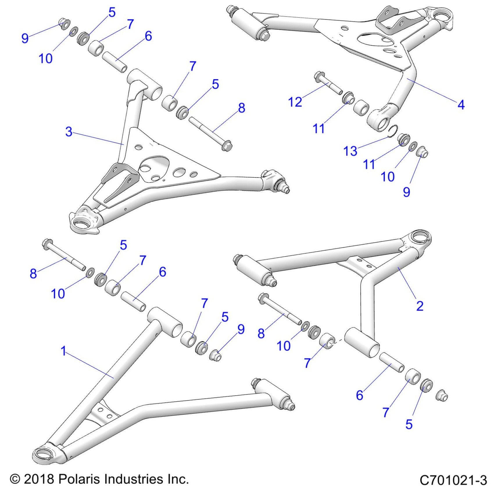 Polaris RZR 900 50 INCH (R03) - Z20A5A87B2/E87BP/BK/BX SUSPENSION, FRONT CONTROL ARMS - Z20A5A87B2/E87BP/BK/BX (C701021-3) Diagram