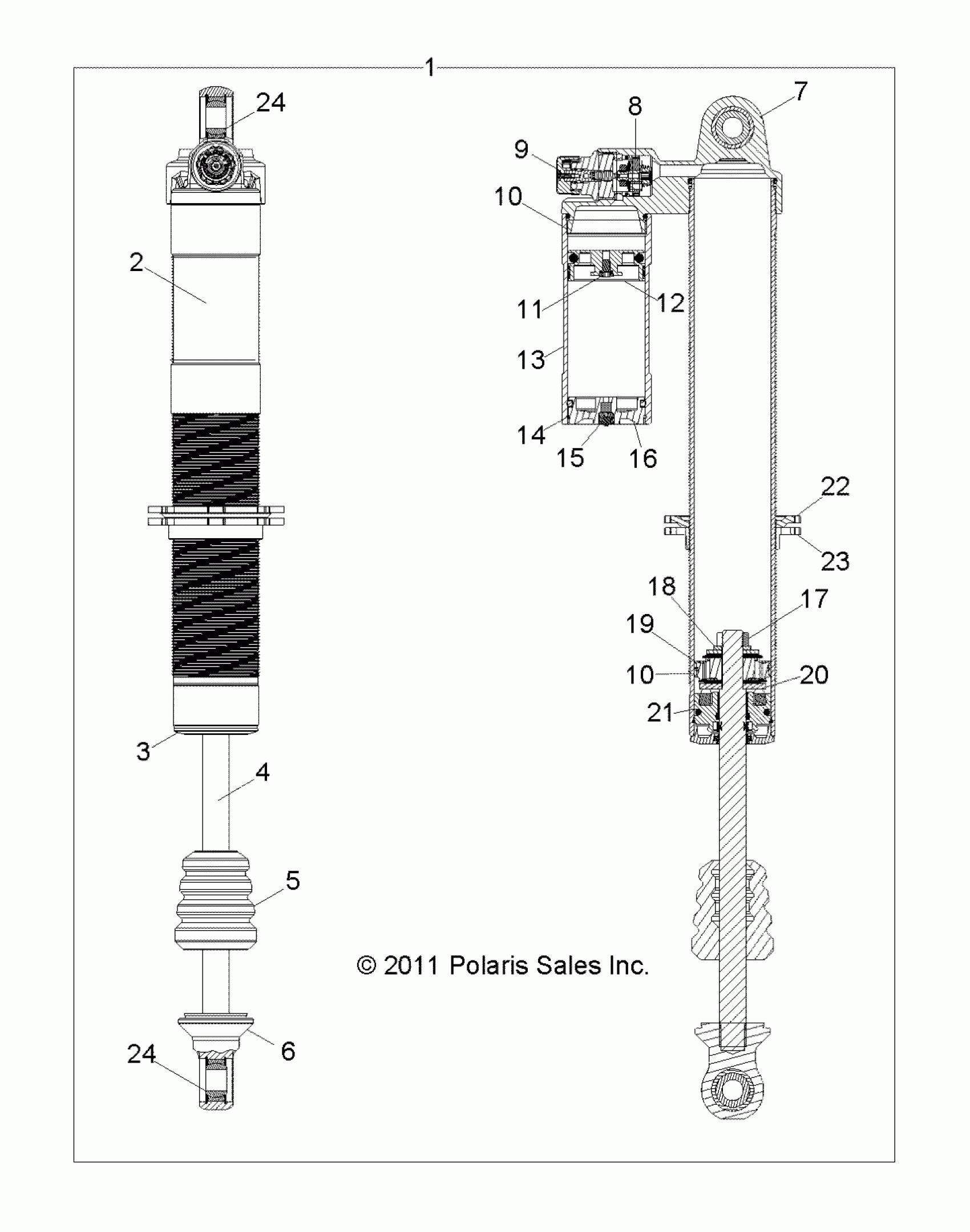 Polaris RZR 900 - Z14JT87AD/9EAO/9EAOL/9EAL SUSPENSION, FRONT SHOCK - Z14JT87AD/9EAO/9EAOL/9EAL (49RGRSHOCKFRT7043795) Diagram
