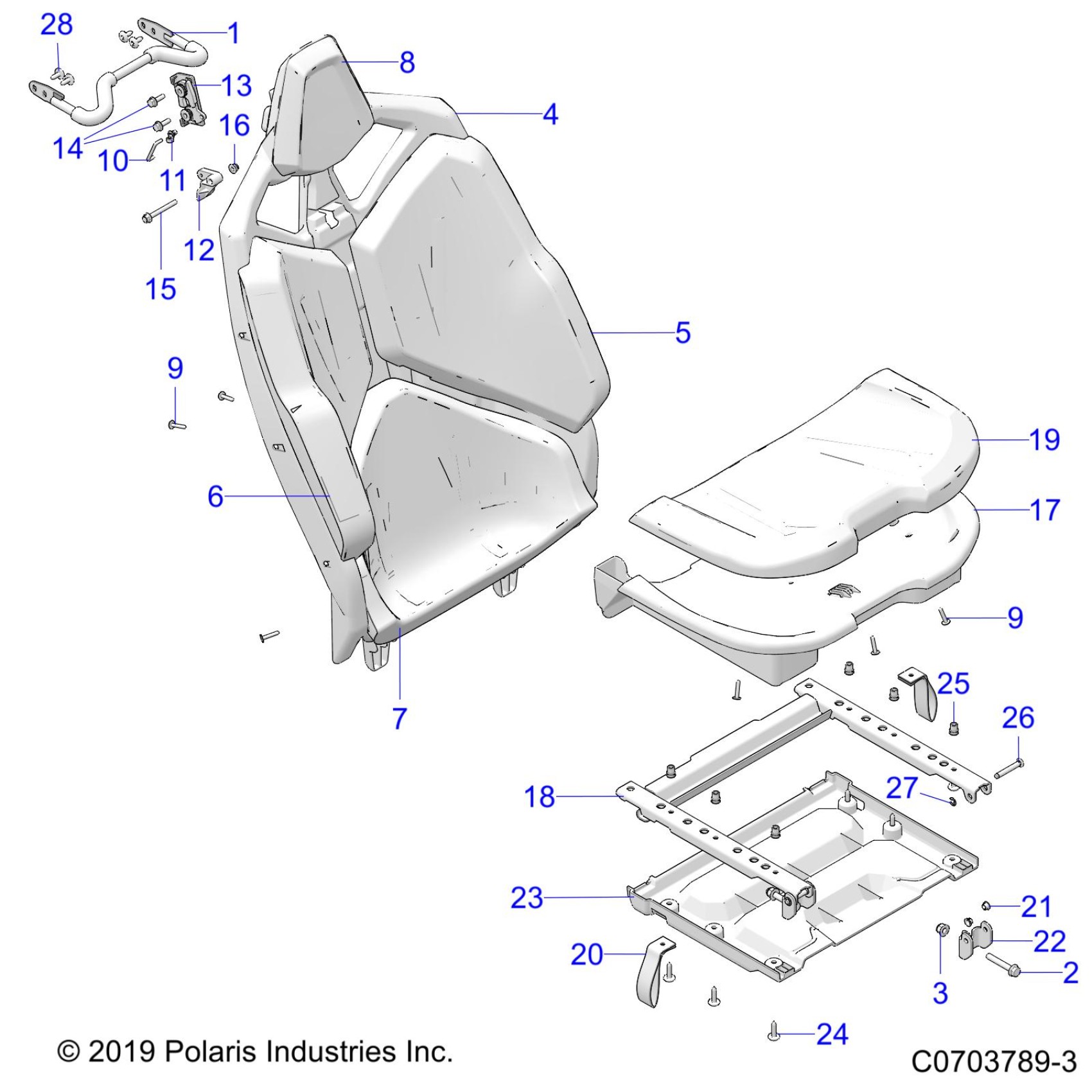 Polaris RZR PRO R 4 SPORT (R04) - Z23RMC2KAJ/BJ BODY, SEAT ASM.,REAR - Z23RMC2KAJ/BJ (C0703789-3) Diagram