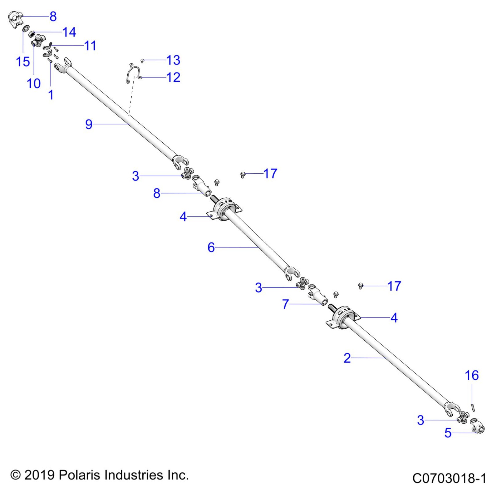 Polaris RZR PRO XP 4 - Z20R4_92AC/BC/AK/BK/AR/BR/LE/LT/LC/AH/BH/AT/BT DRIVE TRAIN, PROP SHAFT - Z20R4_92AC/BC/AE/BE/AK/BK/AR/BR/AH/BH/AT/BT/LE/LT/LC (C0703018-1) Diagram