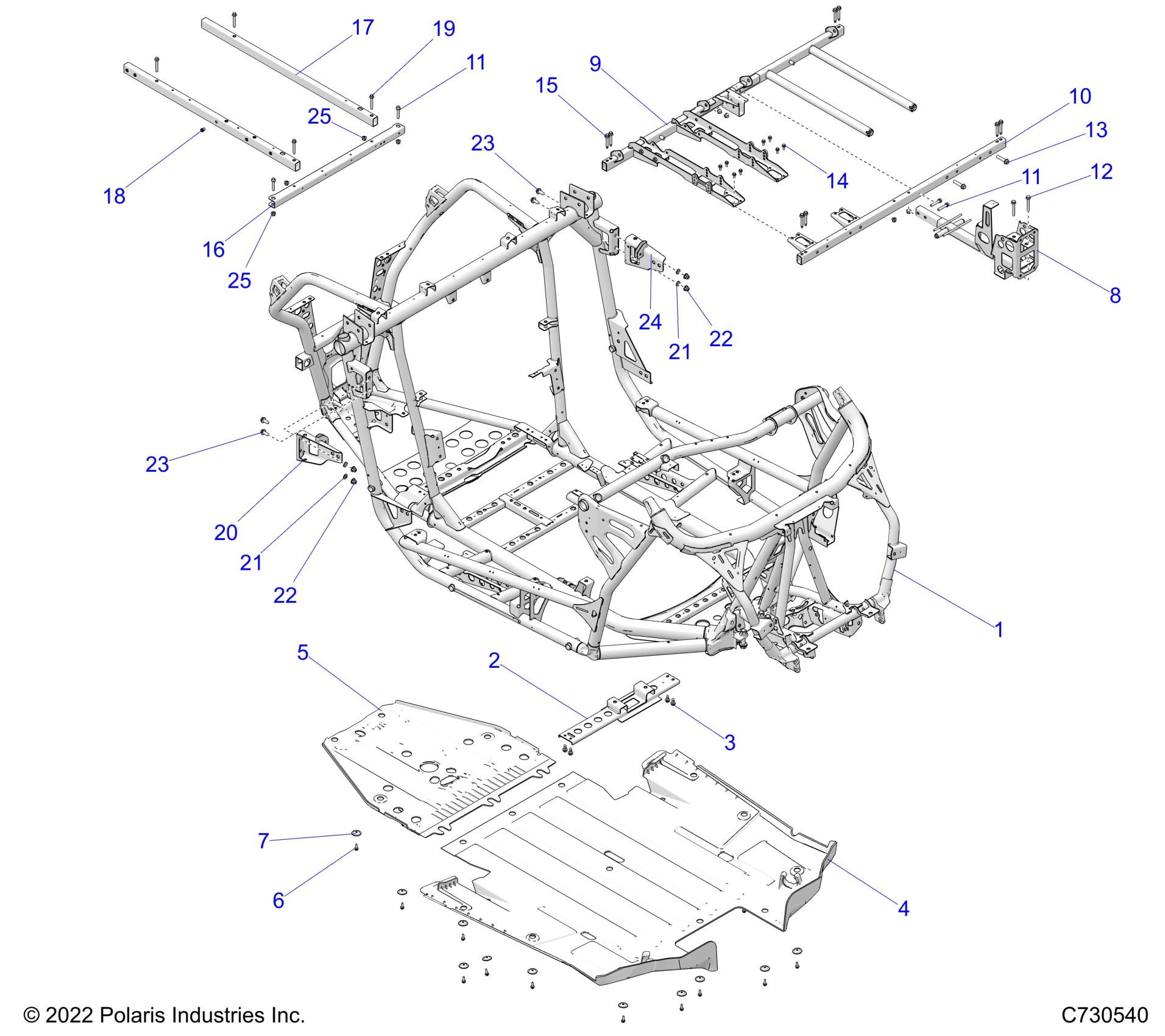 Polaris RZR PRO XP SPORT (R02) - Z23RAE92AG/92BG CHASSIS, MAIN FRAME AND SKID PLATES - Z23RAE92A/92B (C730540) Diagram