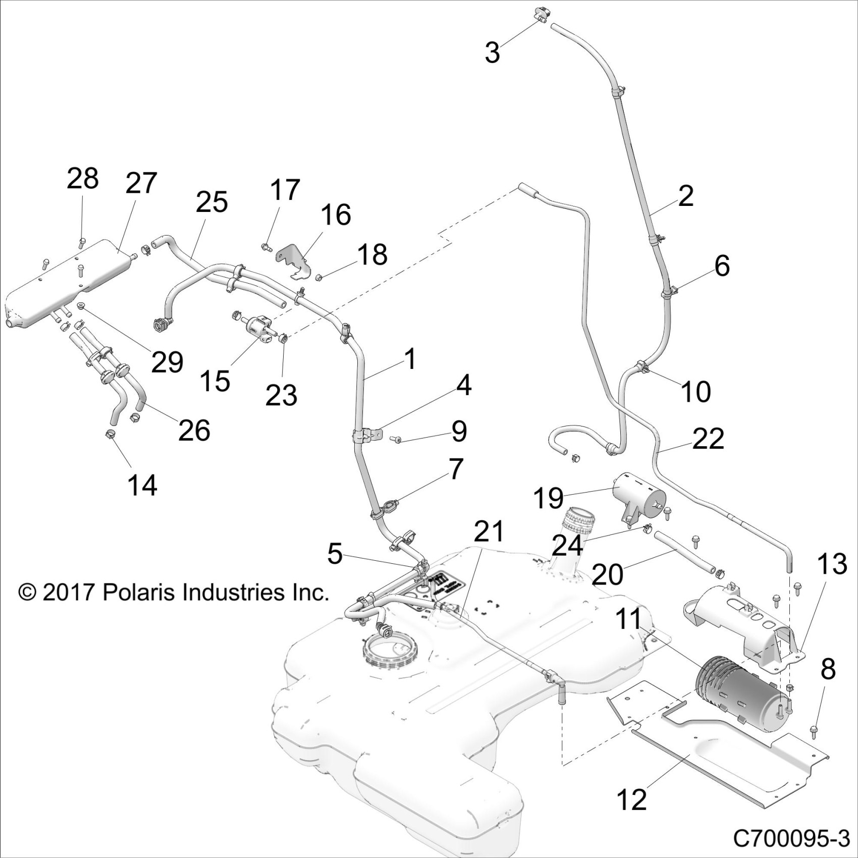 Polaris RZR RS1 (R03) - Z19VGE99AK/AW/BK/BW BODY, FUEL LINE EVAP - Z19VGE99BK/BW (C700095-33) Diagram
