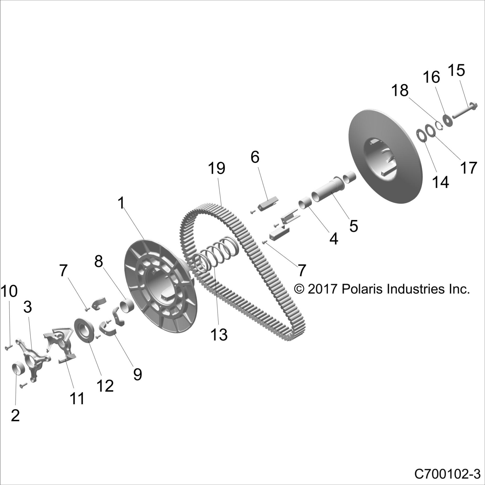 DRIVE TRAIN, SECONDARY CLUTCH - Z18VGE99AK/AW/BK/BW (C700102-3)