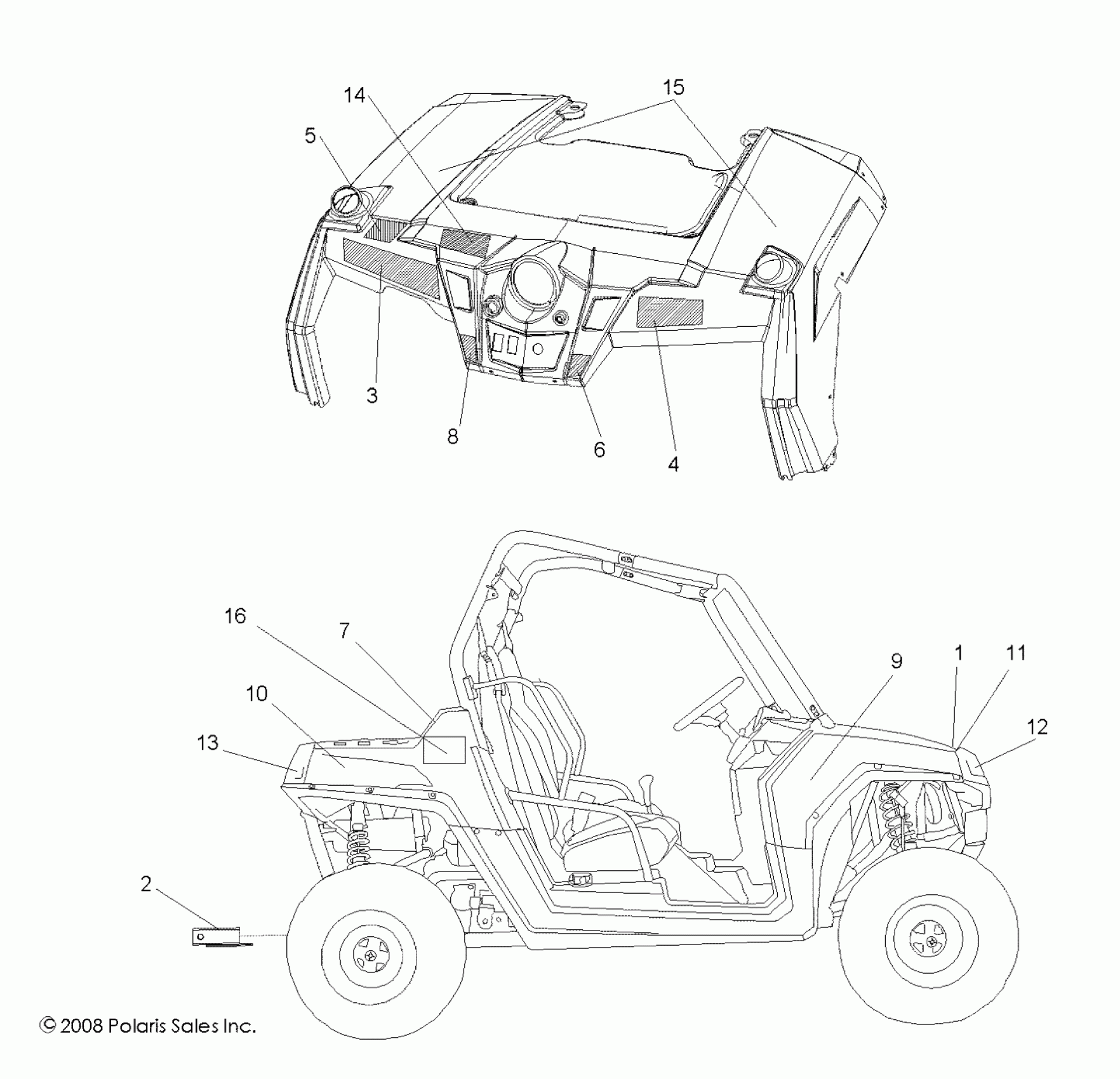 Polaris RZR "S" 800 EFI - R09VH76AX BODY, DECALS - R09VH76AX (49RGRDECAL09RZRS) Diagram