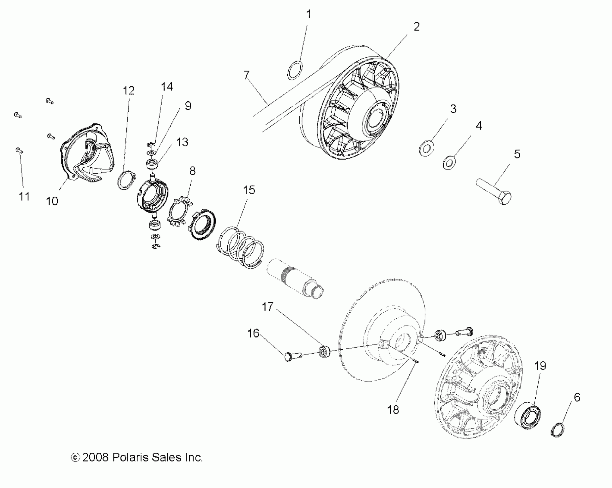 Polaris RZR "S" 800 EFI - R09VH76AX DRIVE TRAIN, SECONDARY CLUTCH - R09VH76AX (49RGRCLUTCHDVN09RZRS) Diagram